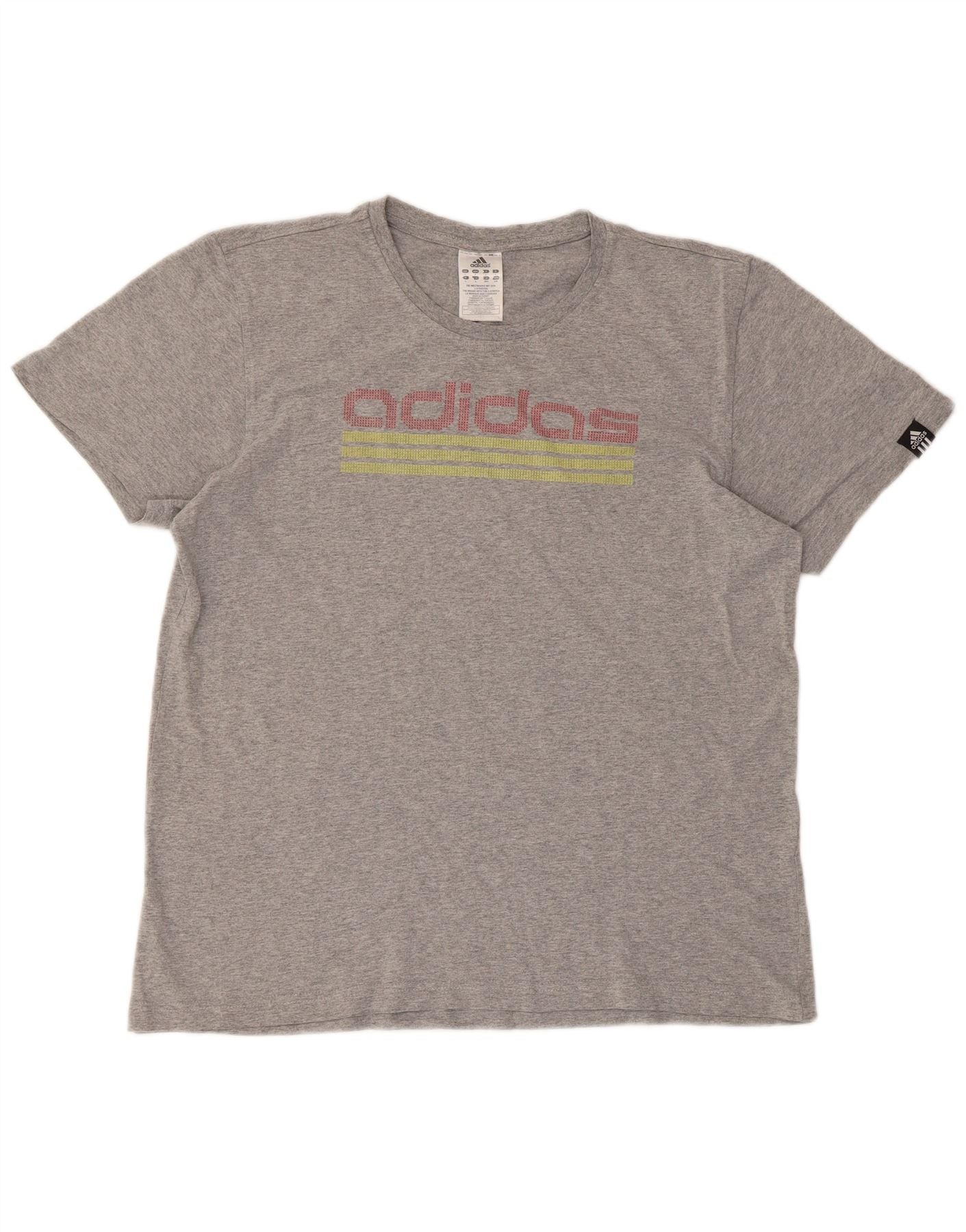 Camiseta feminina ADIDAS com estampa gráfica UK 16 grande algodão cinza