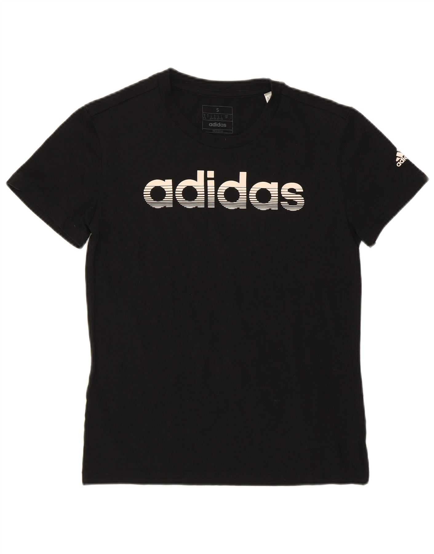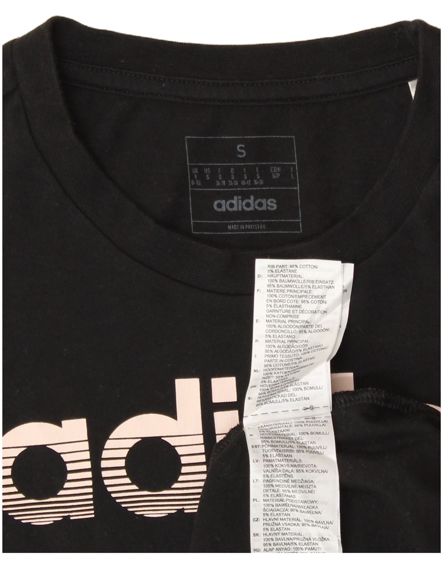 ADIDAS Womens Graphic T-Shirt Top UK 8/10 Pequeno Algodão Preto