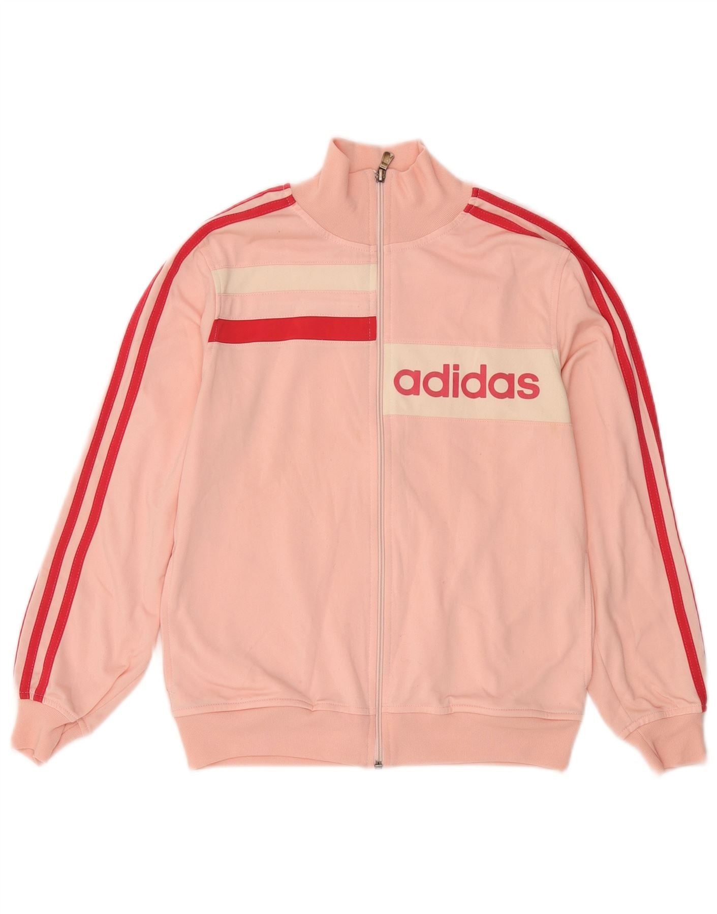 ADIDAS Womens Graphic Tracksuit Top Jacket UK 14 Medium Pink Colourblock