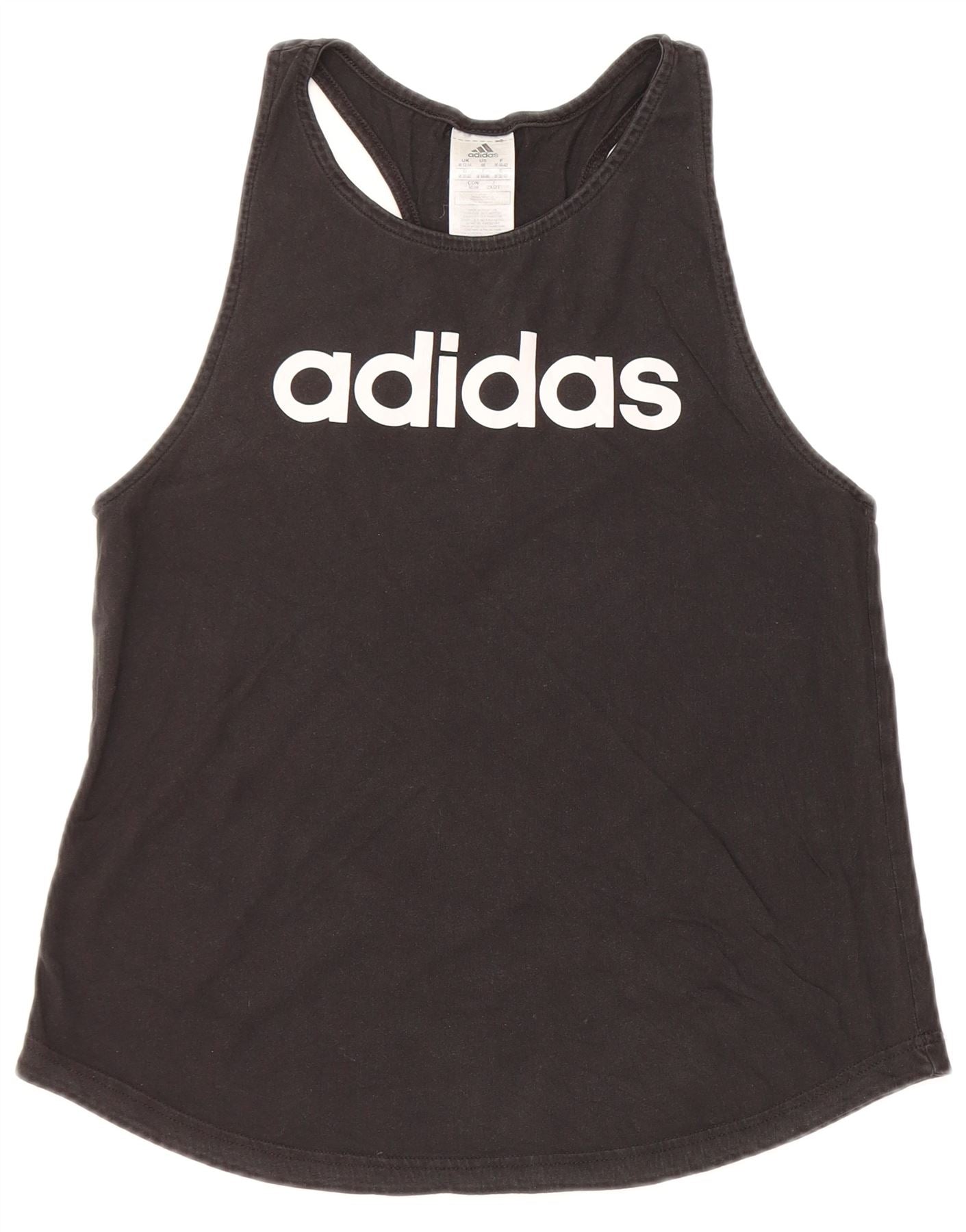 ADIDAS Womens Graphic Vest Top UK 12/14 Médio Algodão Preto