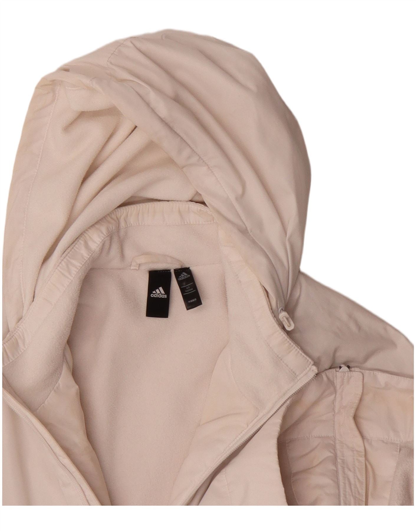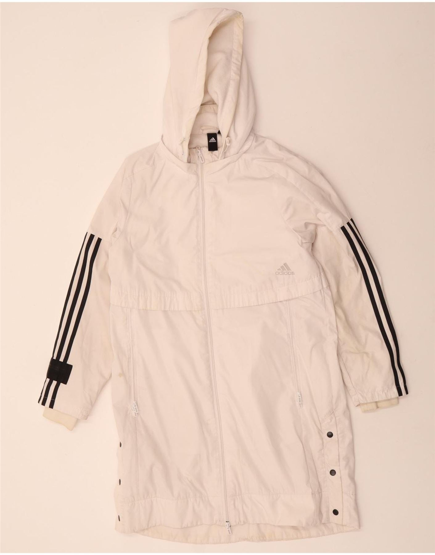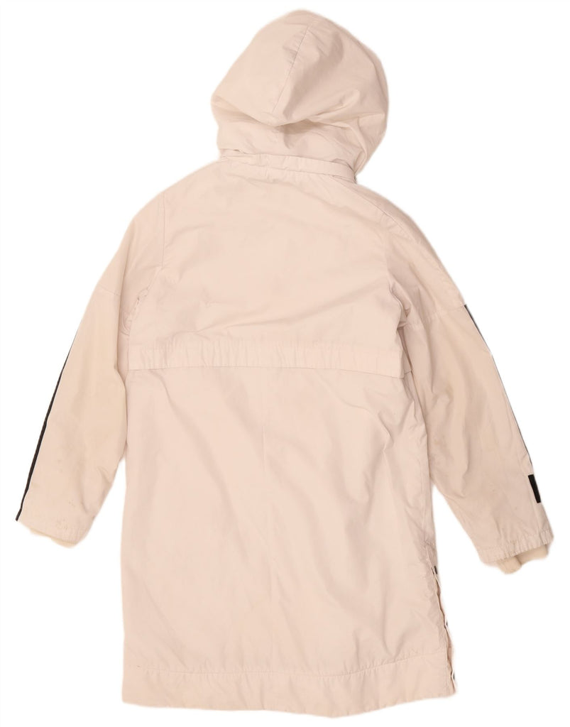 ADIDAS Womens Hooded Windbreaker Coat UK 14 Medium White Colourblock
