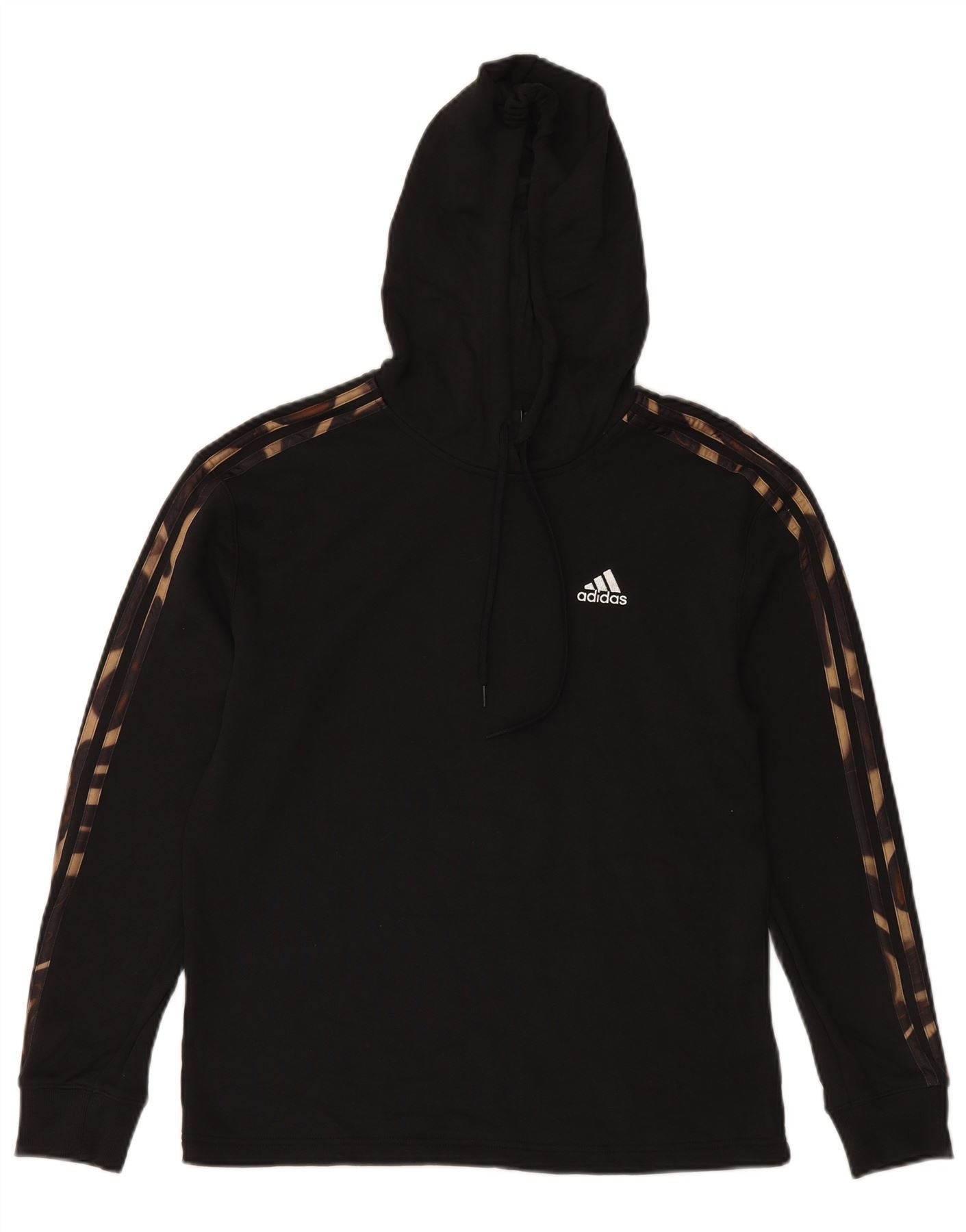 ADIDAS Womens Hoodie Jumper UK 12/14 Médio Preto Camuflagem Algodão