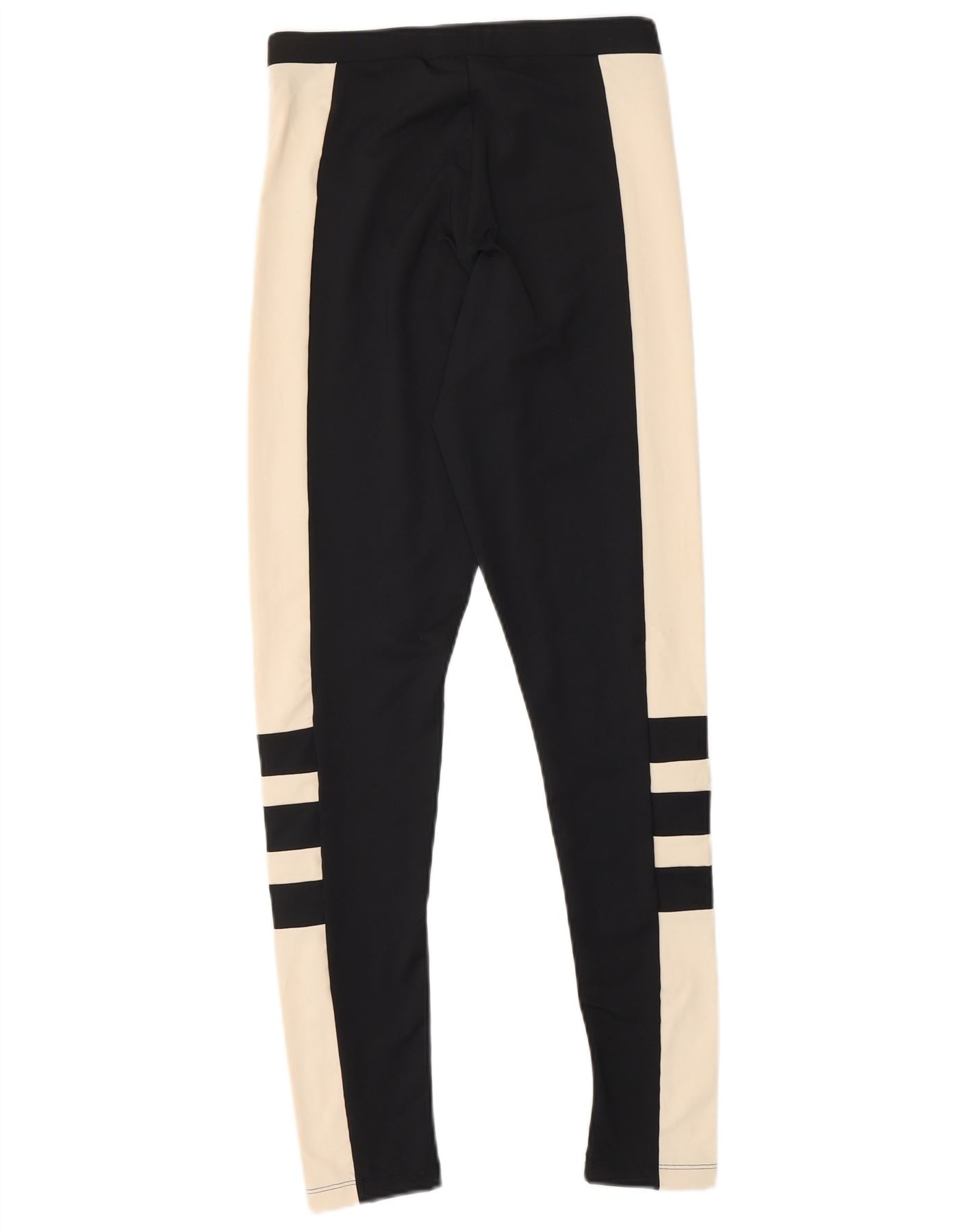 ADIDAS Womens Leggings UK 8 Small Black Colourblock Poliéster