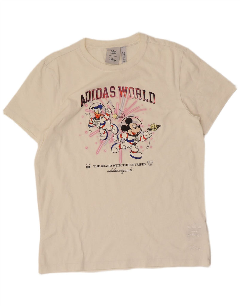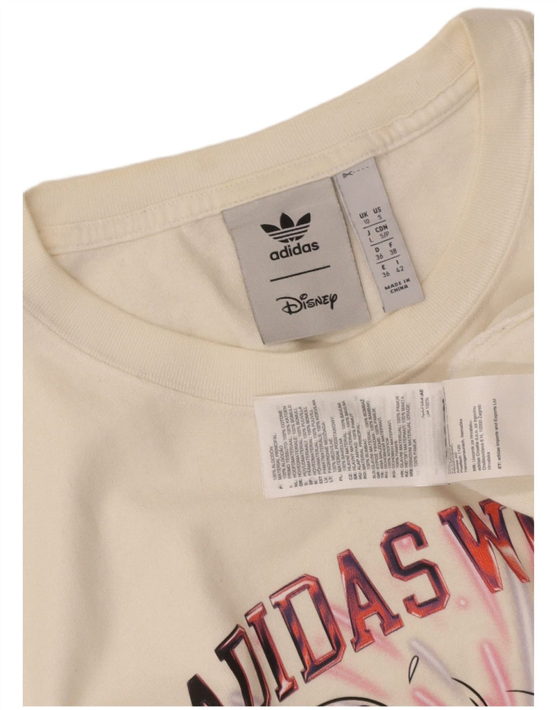 ADIDAS Womens Mickey Mouse Graphic T-Shirt Top Reino Unido 10 Pequeno Off White