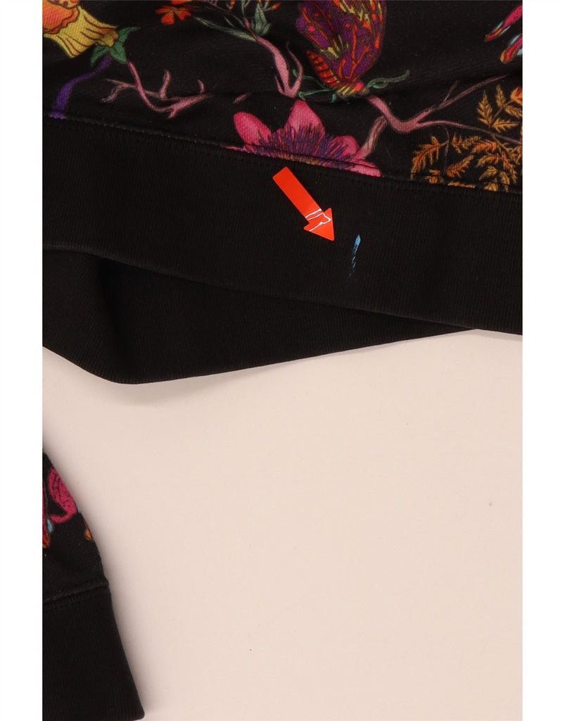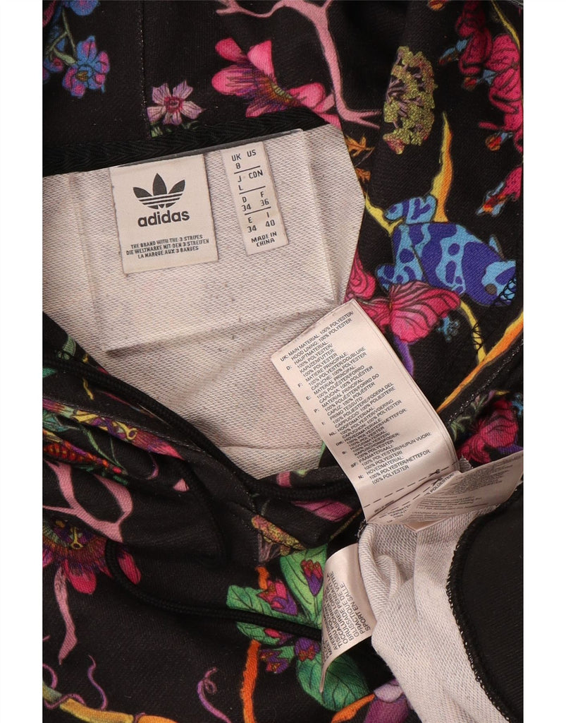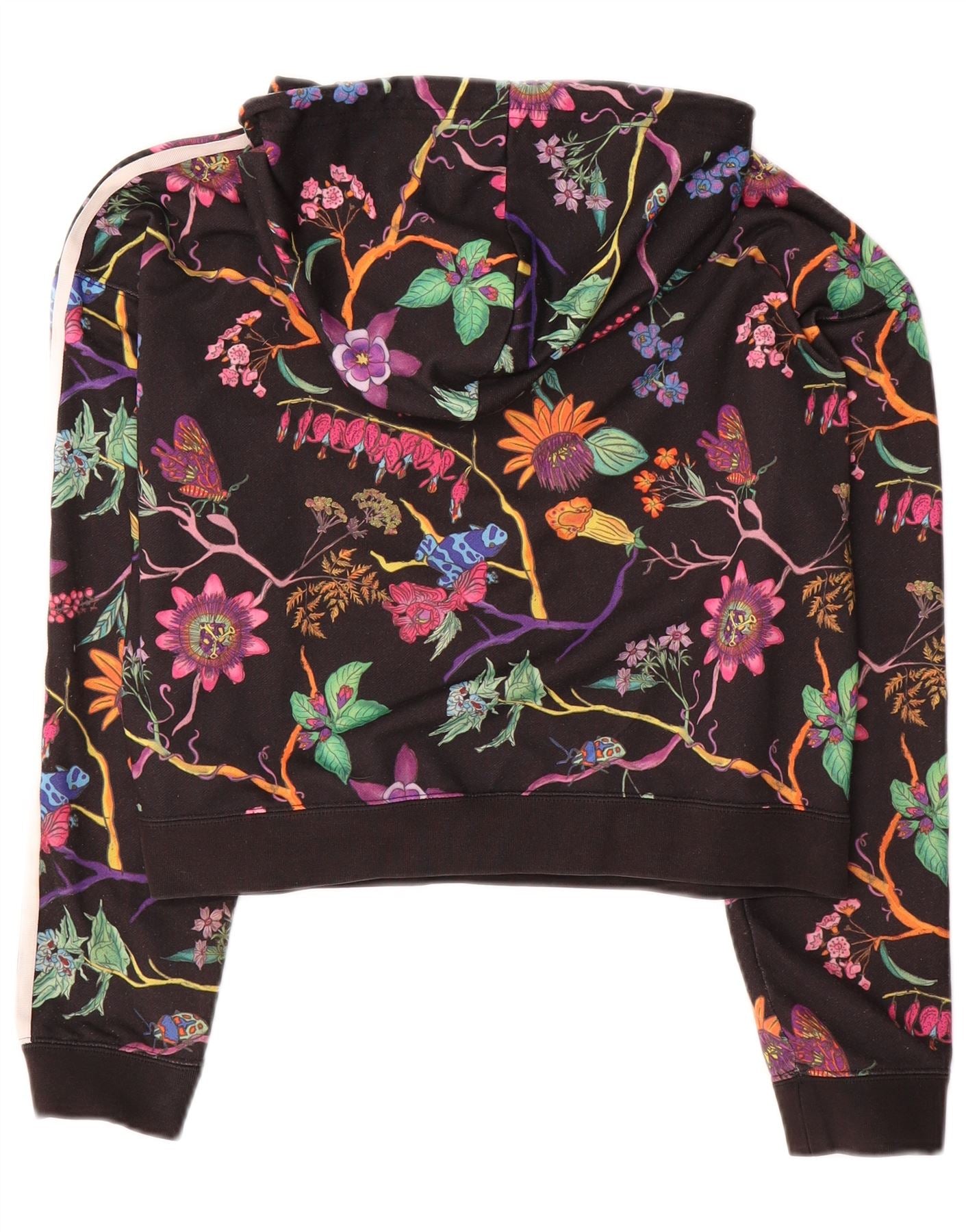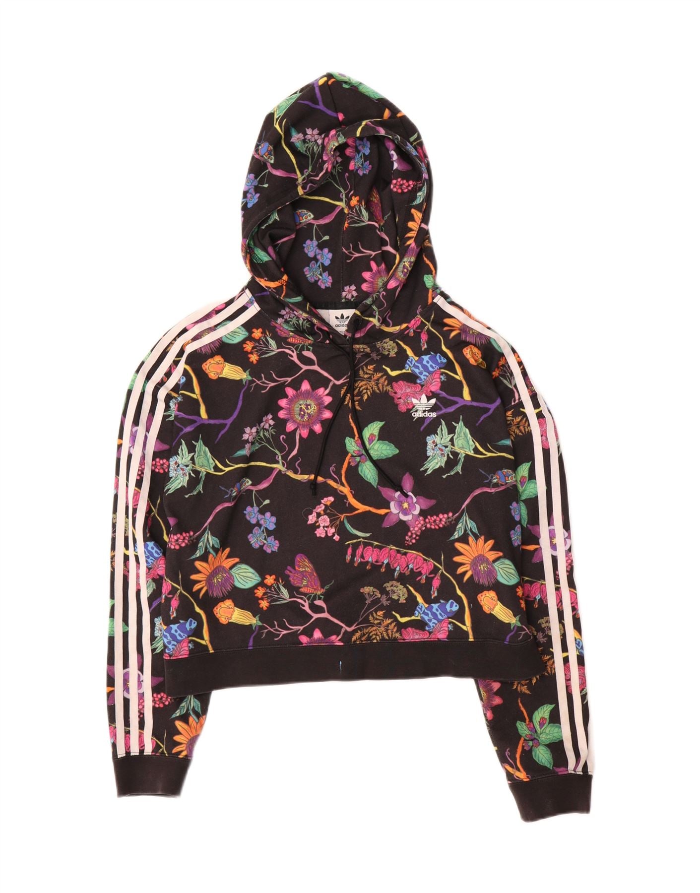 ADIDAS Womens Oversized Crop Hoodie Jumper UK 8 Pequeno Preto Floral