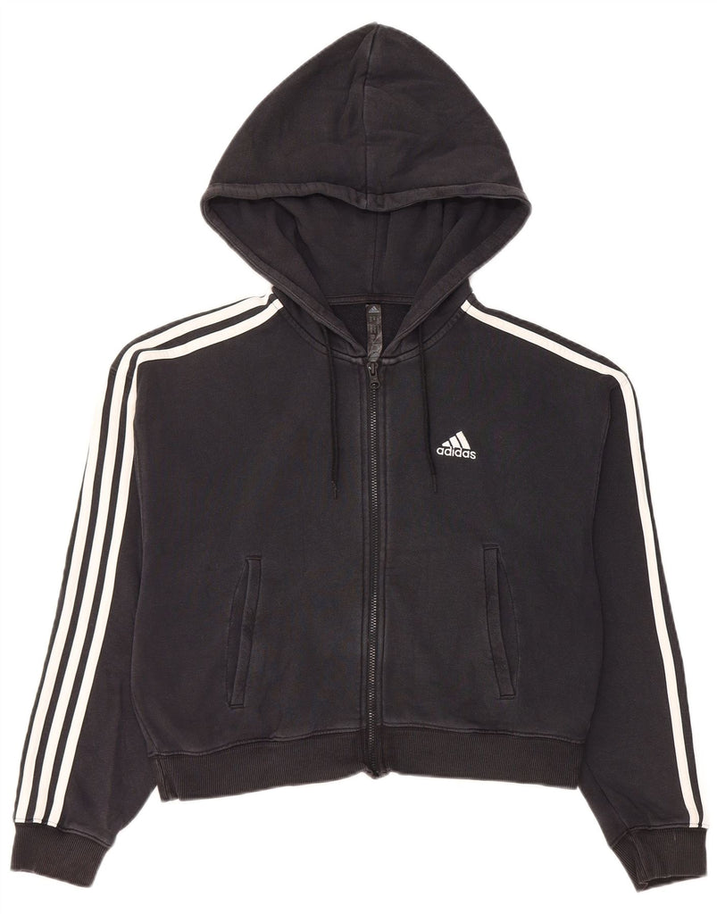 ADIDAS Suéter feminino com capuz e zíper oversized UK 4/6 XS algodão preto