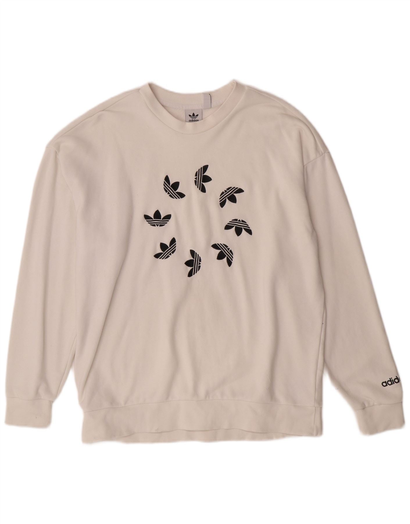 ADIDAS Womens Oversized Graphic Sweatshirt Jumper UK 12 Médio Off White