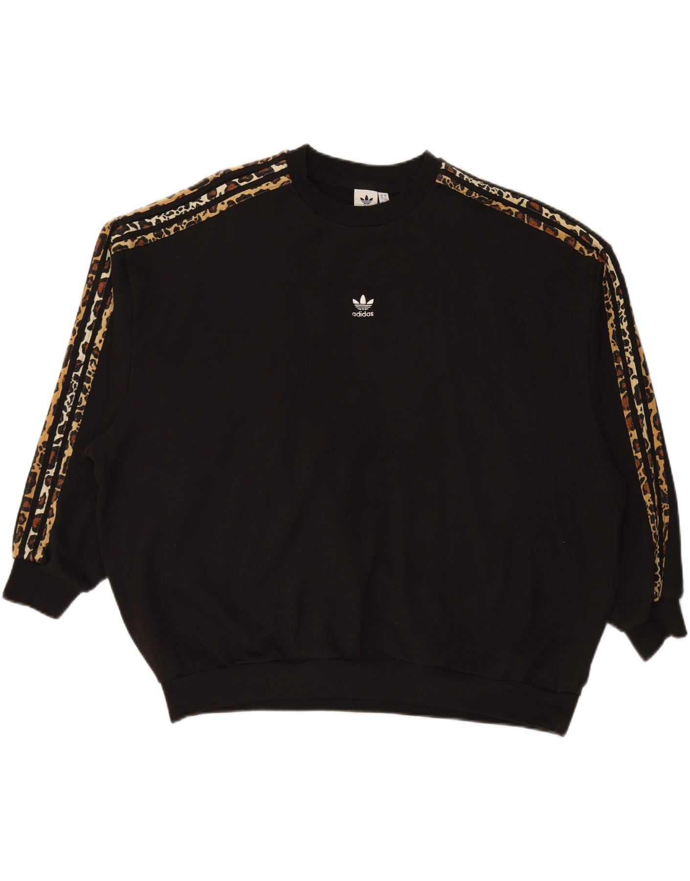 ADIDAS Womens Oversized Sweatshirt Jumper UK 18 XL Black Animal Print