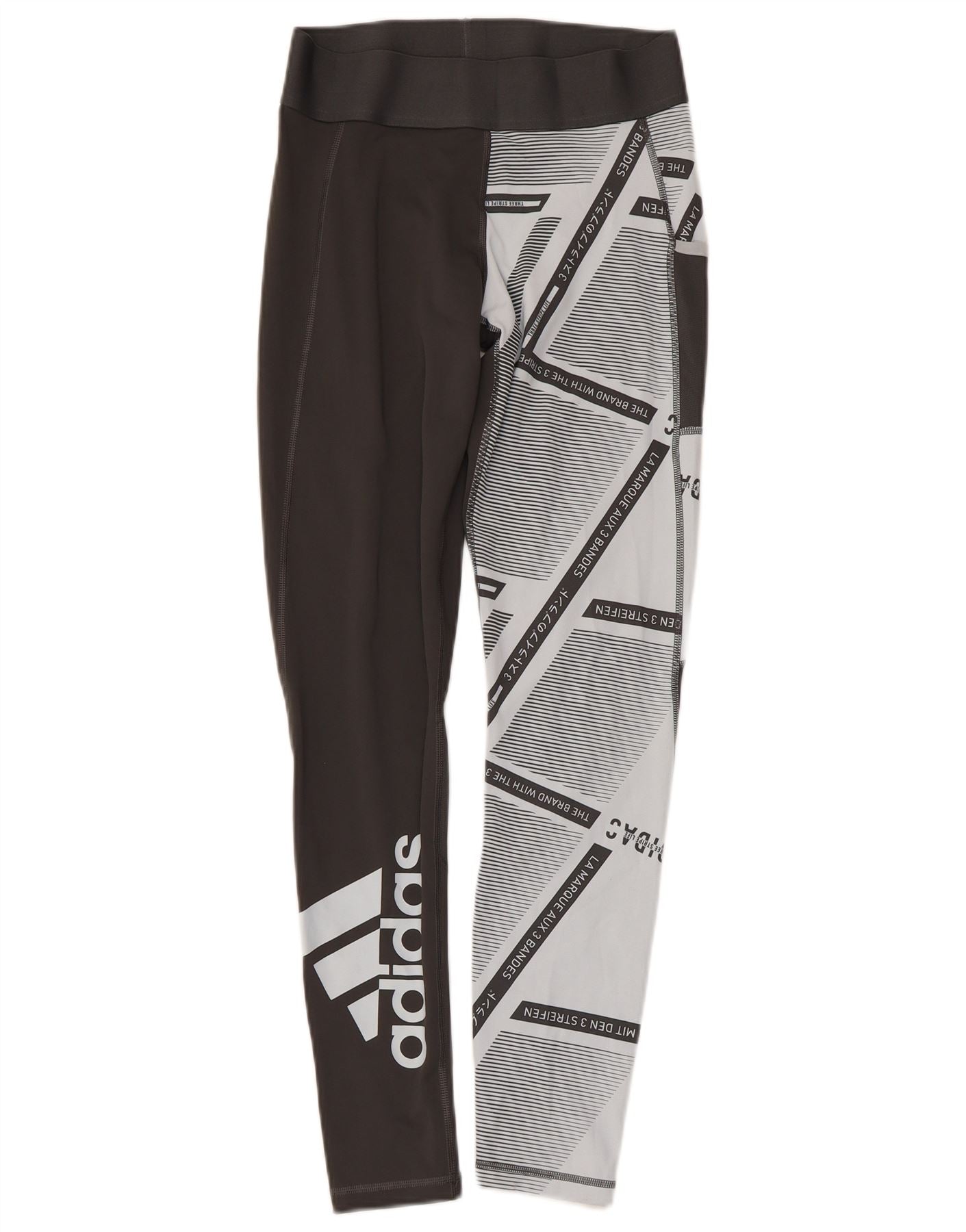 ADIDAS Womens Three Stripes Leggings UK 8/10 Pequeno Preto Geométrico