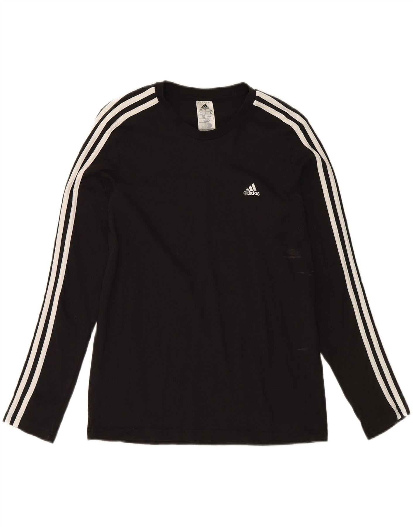 ADIDAS Womens Top Manga Longa Reino Unido 16/18 Grande Algodão Preto