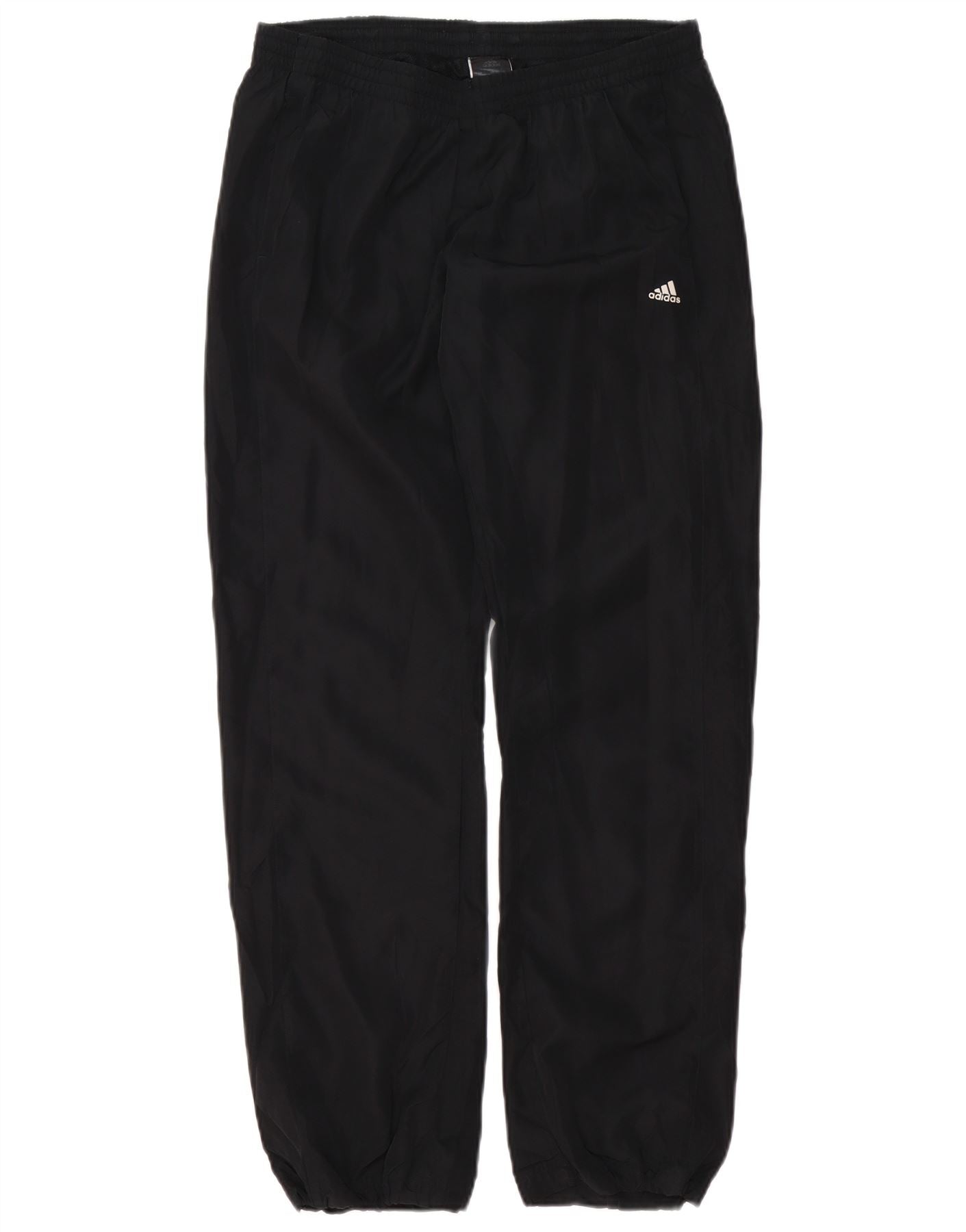 - Descrição da IA: Estas calças de treino femininas da Adidas são feitas de tecido preto leve. Eles apresentam um ajuste relaxado e solto para maior conforto. A cintura elástica garante um fecho seguro. Bolsos práticos estão incluídos para maior comodidade. Um logotipo sutil da Adidas fornece um toque esportivo exclusivo. O design é simples e funcional, perfeito para uso esportivo.