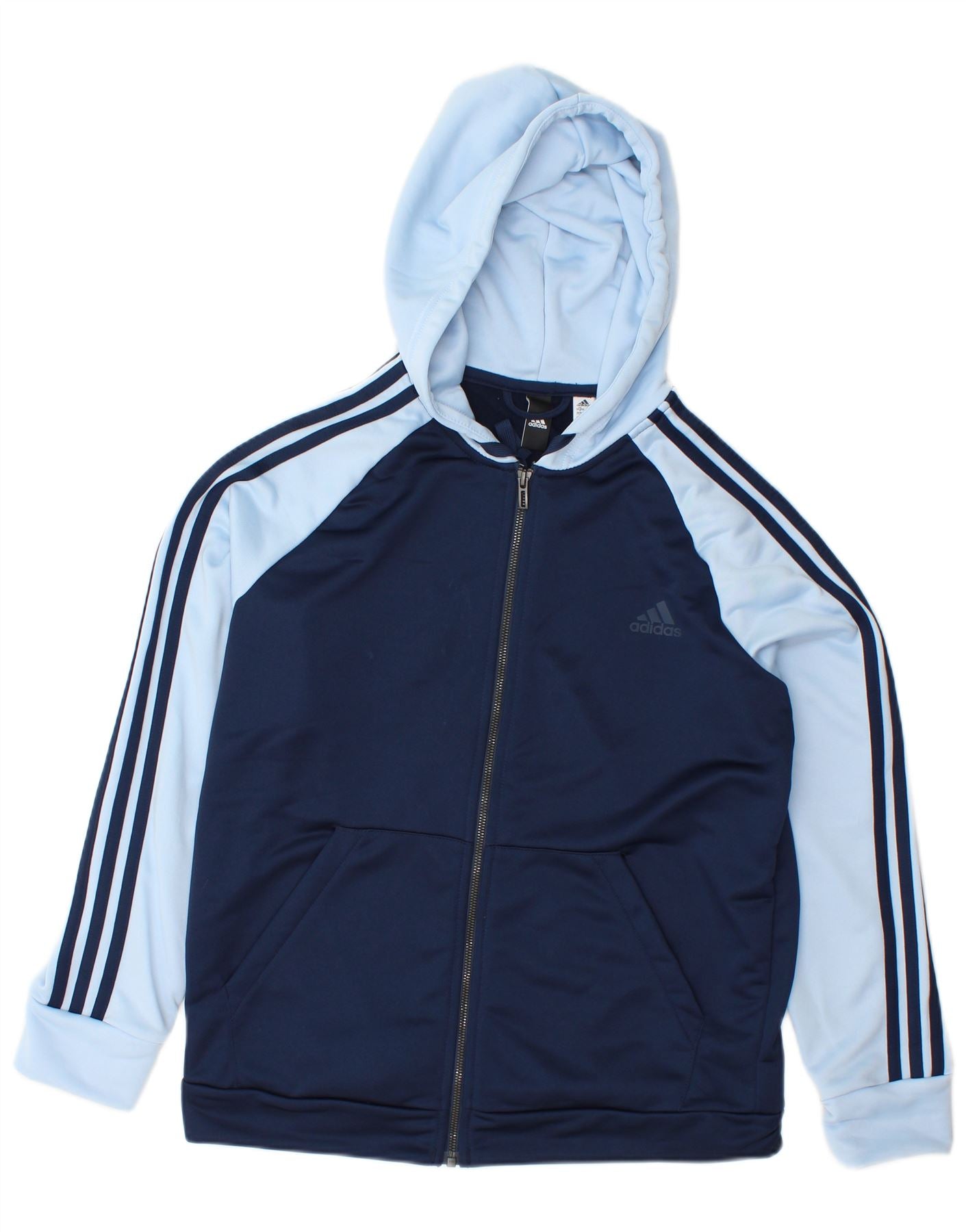 ADIDAS Suéter com capuz zip feminino UK 20/22 XL azul marinho colorblock