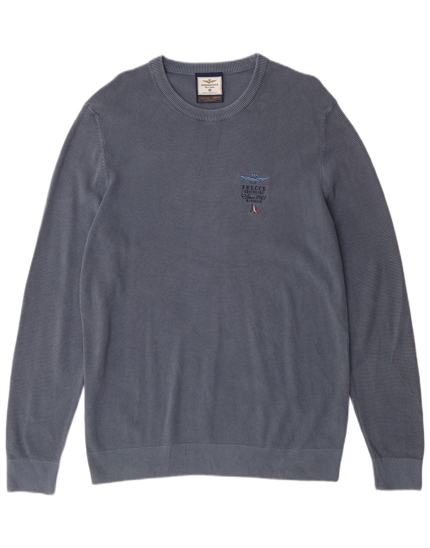AERONAUTICA MILITARE Suéter masculino com gola redonda XL algodão azul