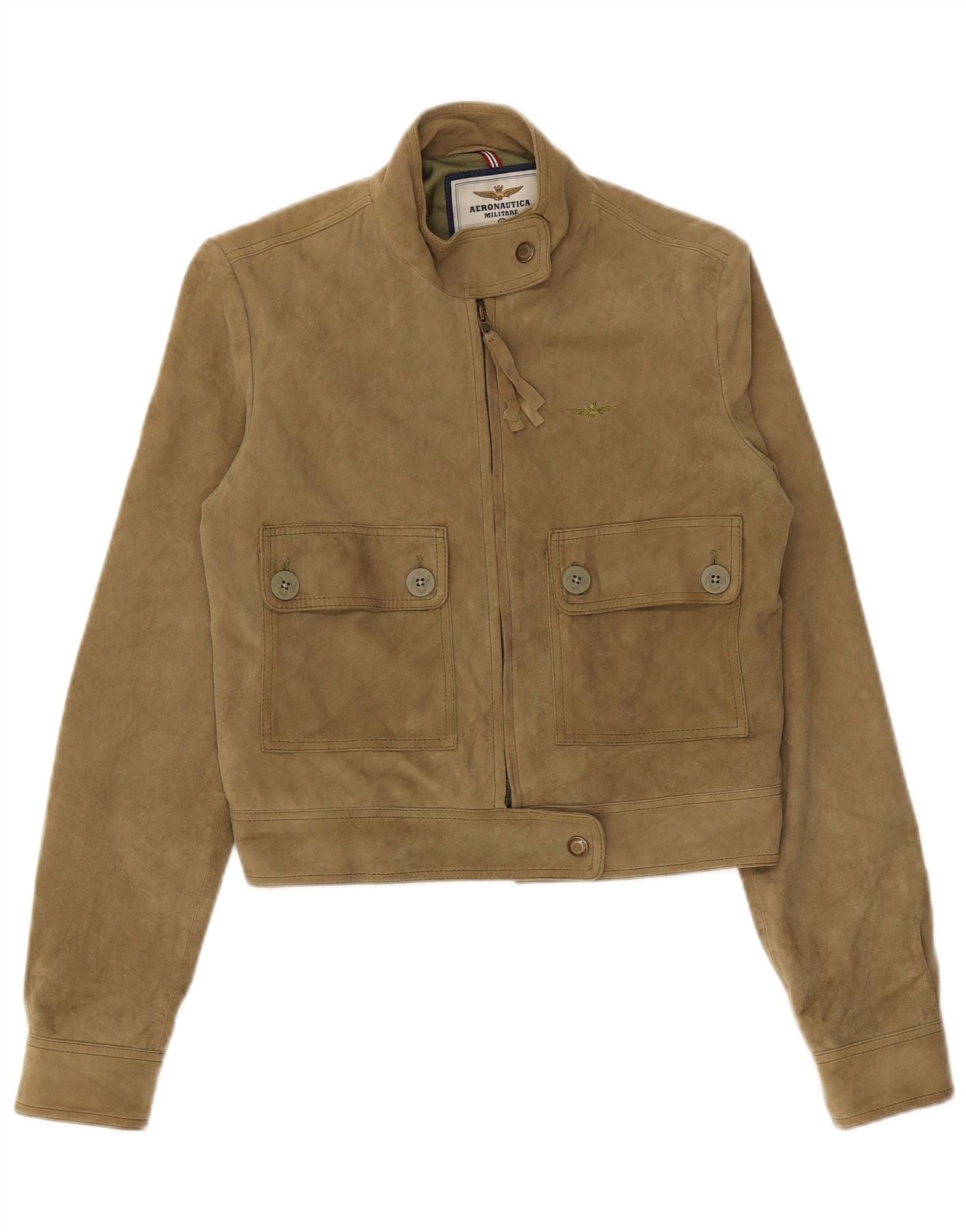 Jaqueta feminina de camurça cropped Aeronautica Militare IT 42 couro cáqui médio