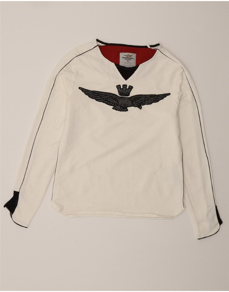AERONAUTICA MILITARE Womens Graphic Top Long Sleeve UK 10 Small White