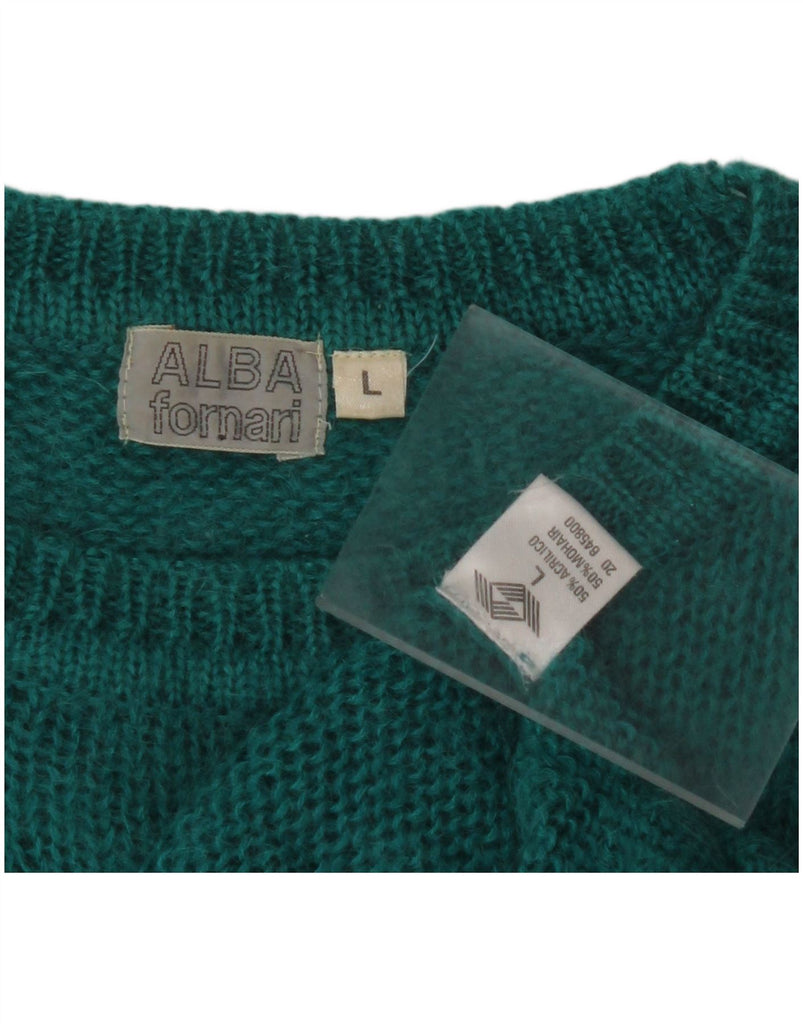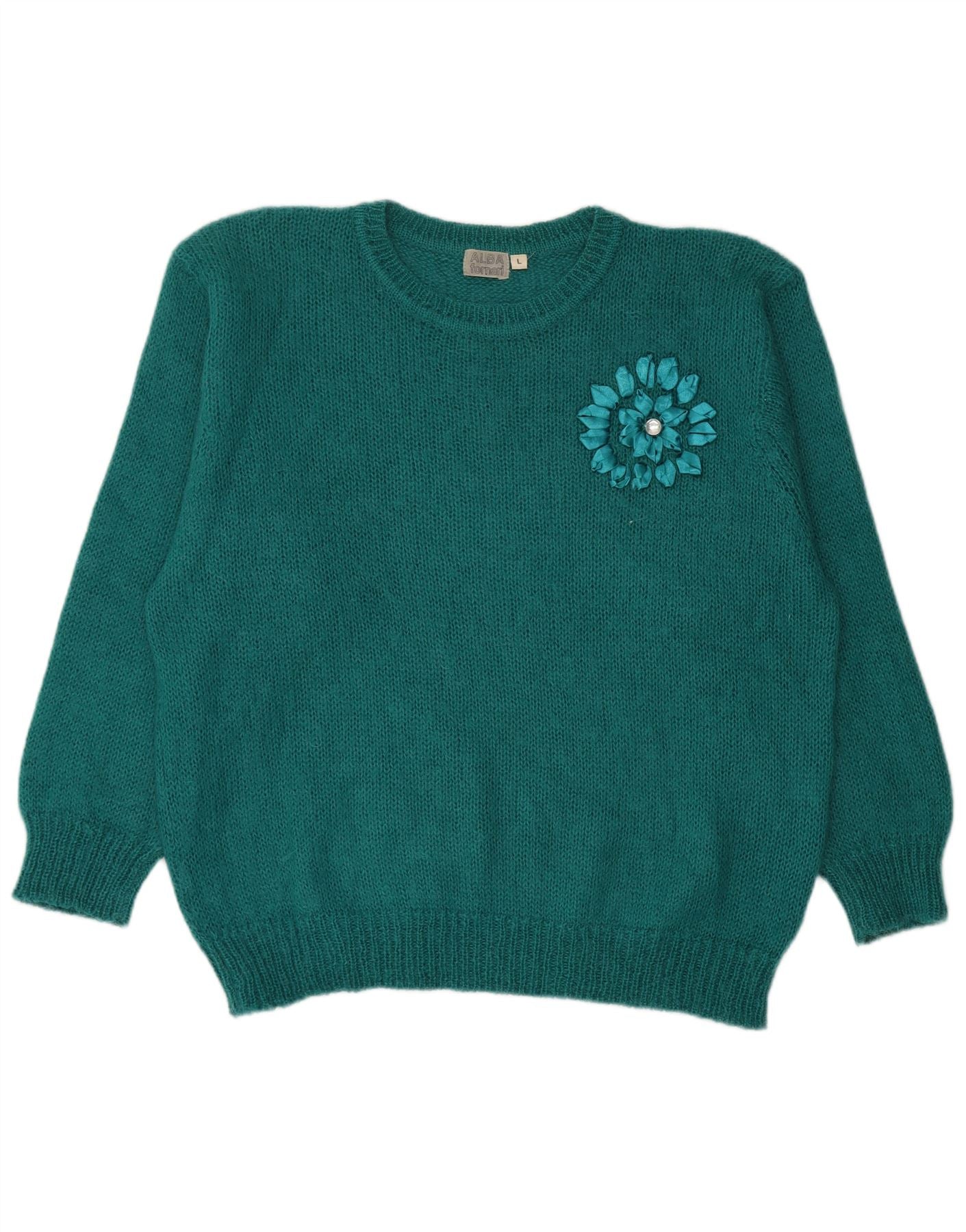 Suéter feminino ALBA FORNARI com gola redonda, Reino Unido 16, grande, verde, floral