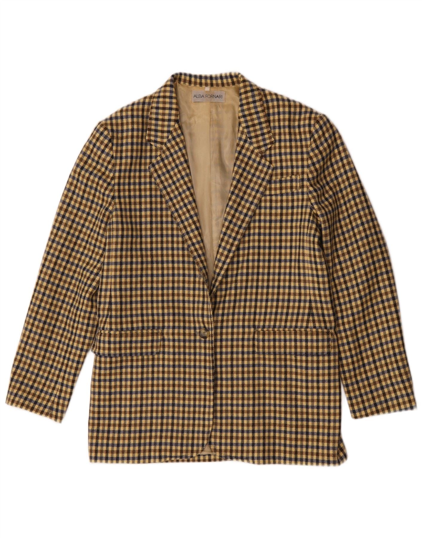Jaqueta Blazer Longline Feminina ALBA FORNARI Reino Unido 14 Médio Bege Gingham