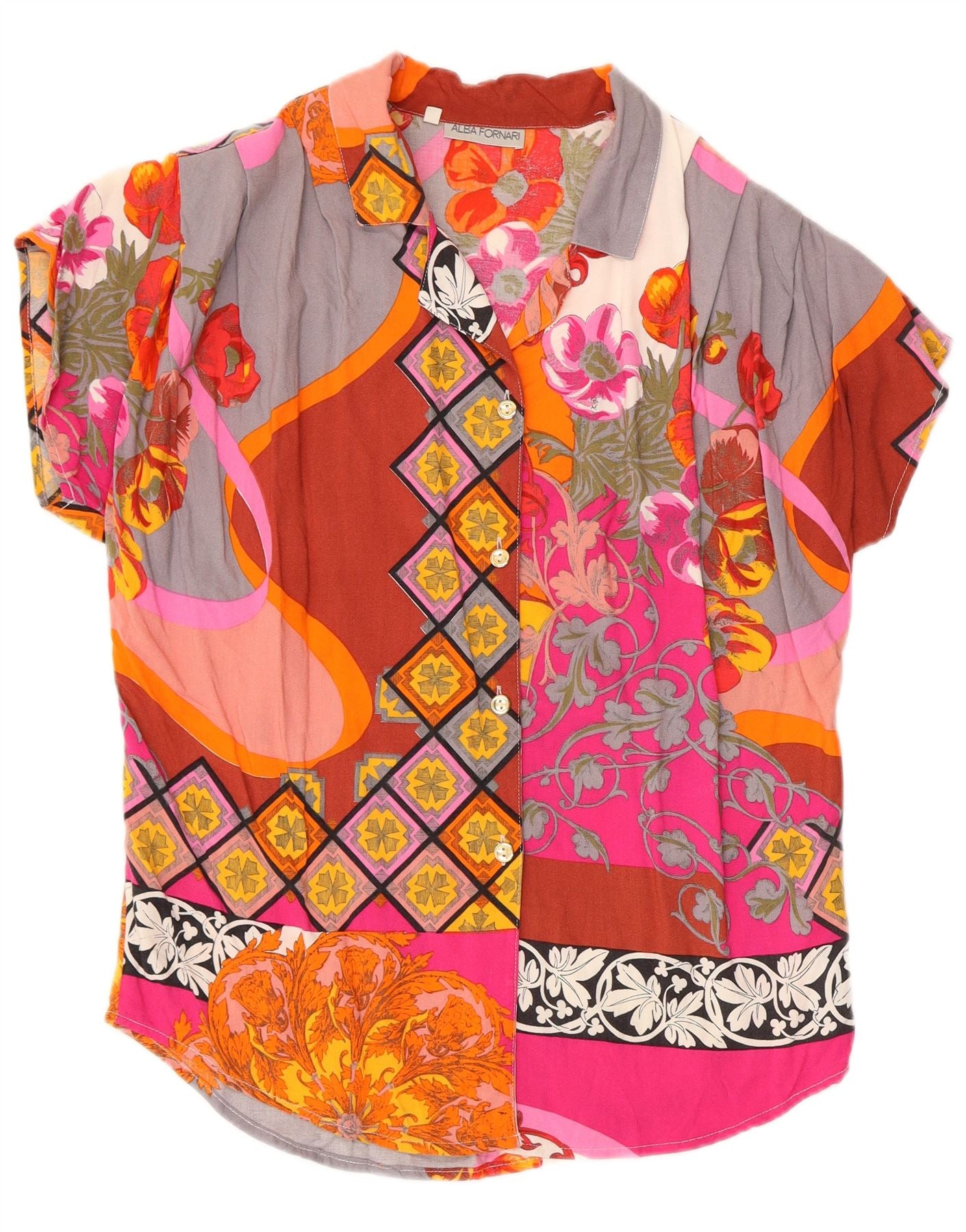 ALBA FORNARI Camisa feminina oversized UK 10 pequenos retalhos multicoloridos