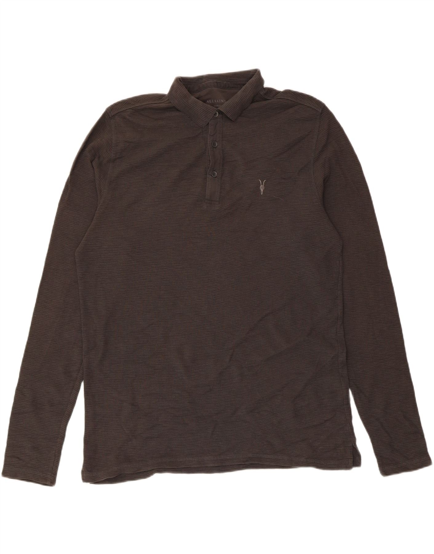 Camisa polo masculina de manga comprida All Saints algodão cinza médio