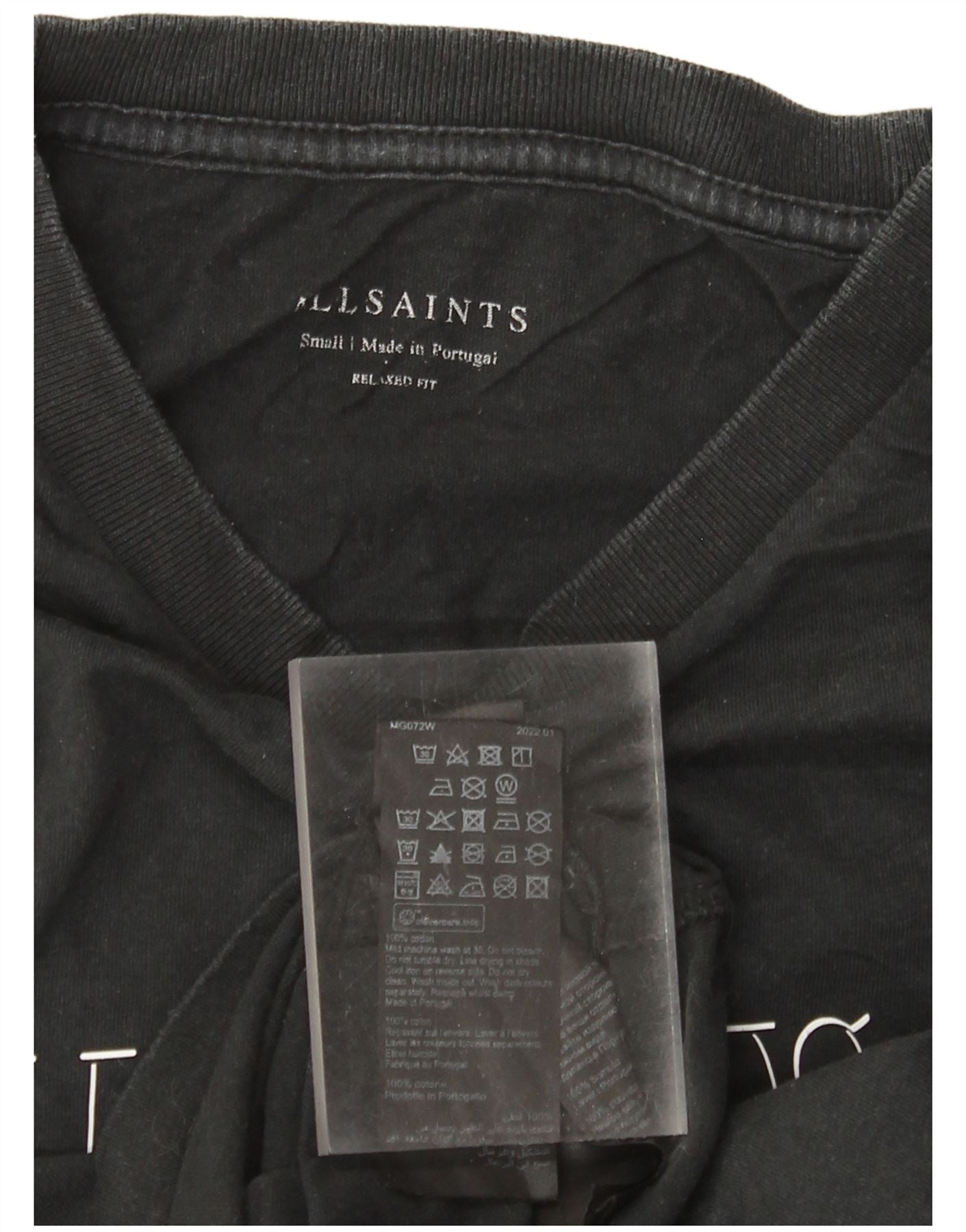 Camiseta masculina All Saints com ajuste relaxado e estampa gráfica pequena de algodão preto