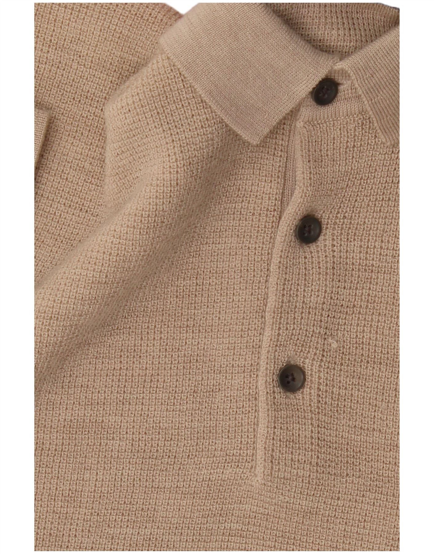 All Saints Suéter masculino de manga curta com gola polo grande bege