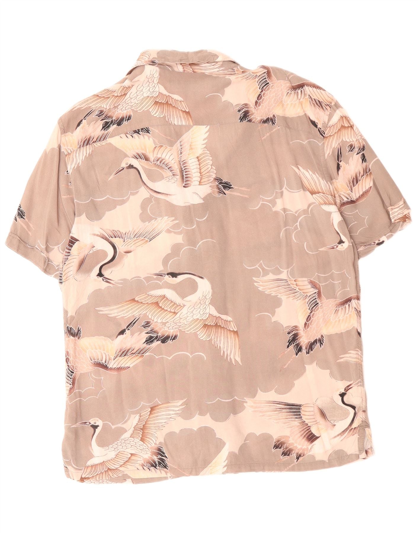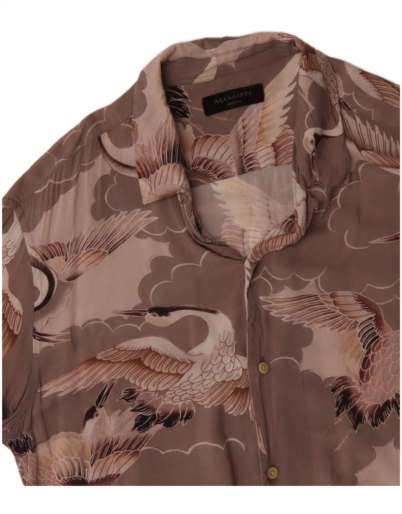Camisa masculina de manga curta All Saints cinza médio com estampa animal viscose pássaro