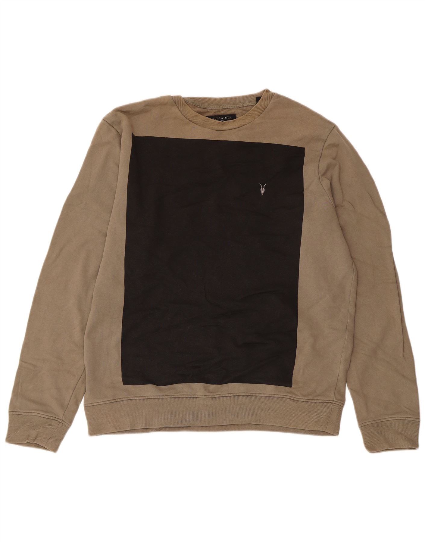 All Saints moletom masculino jumper grande bege colorblock algodão