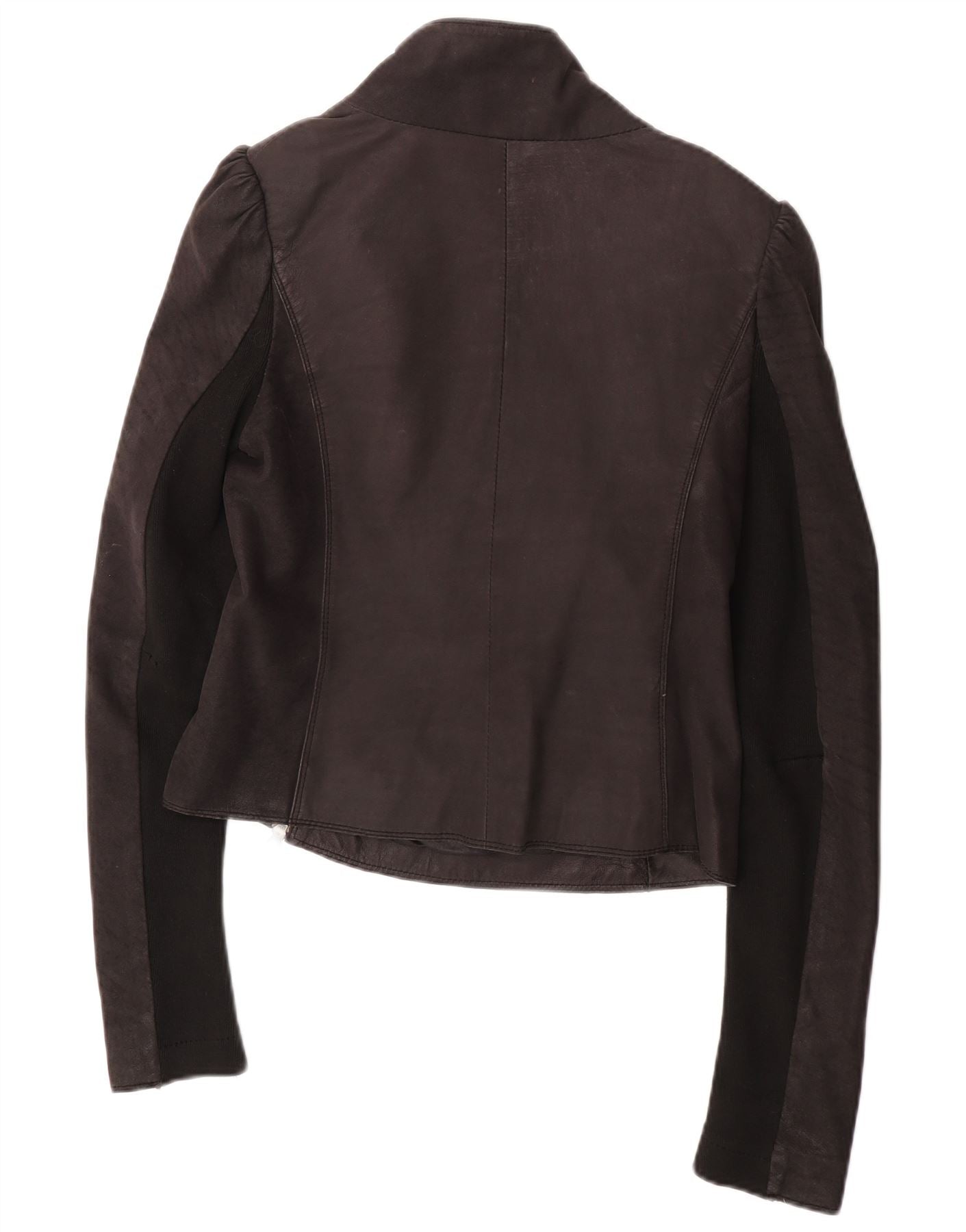 Jaqueta All Saints feminina de couro Racer UK 12 couro preto médio