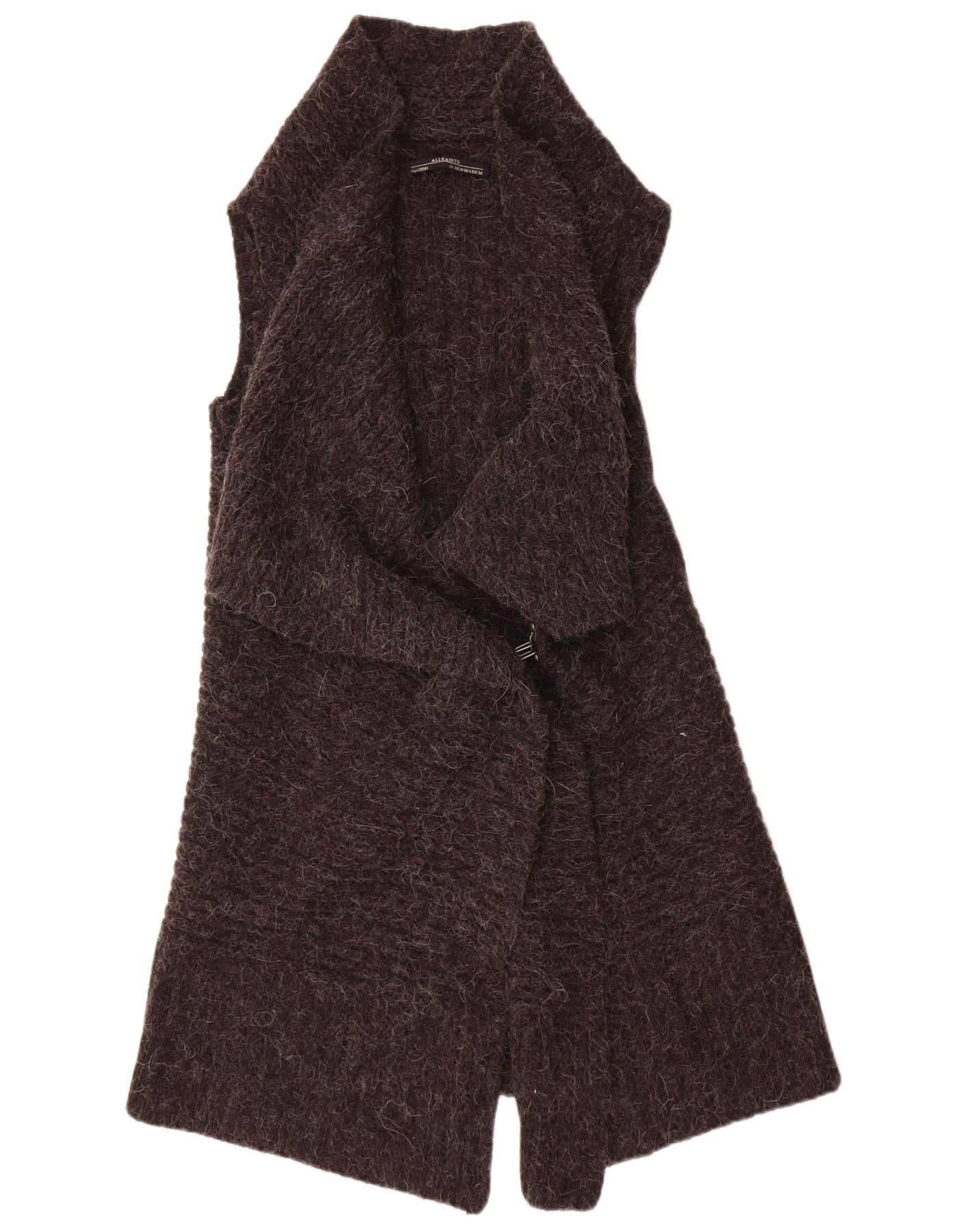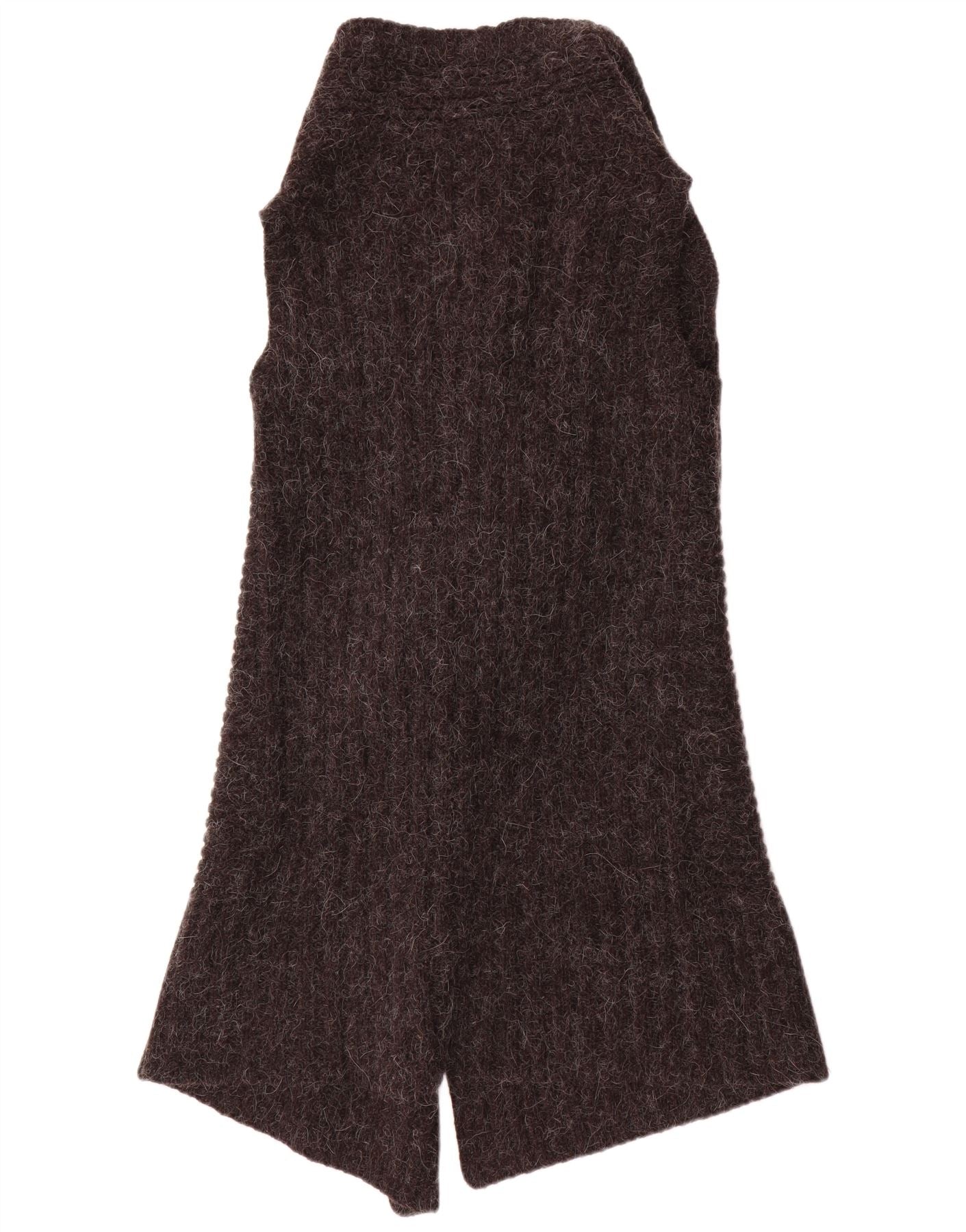 - AI Description: This All Saints womens waistcoat is crafted from a brown knit fabric. It features a collared neckline and a sleeveless design. The relaxed fit offers comfortable wear. An asymmetric detail adds a modern edge. The pullover style ensures easy dressing. Its soft texture provides a stylish layer for any outfit.