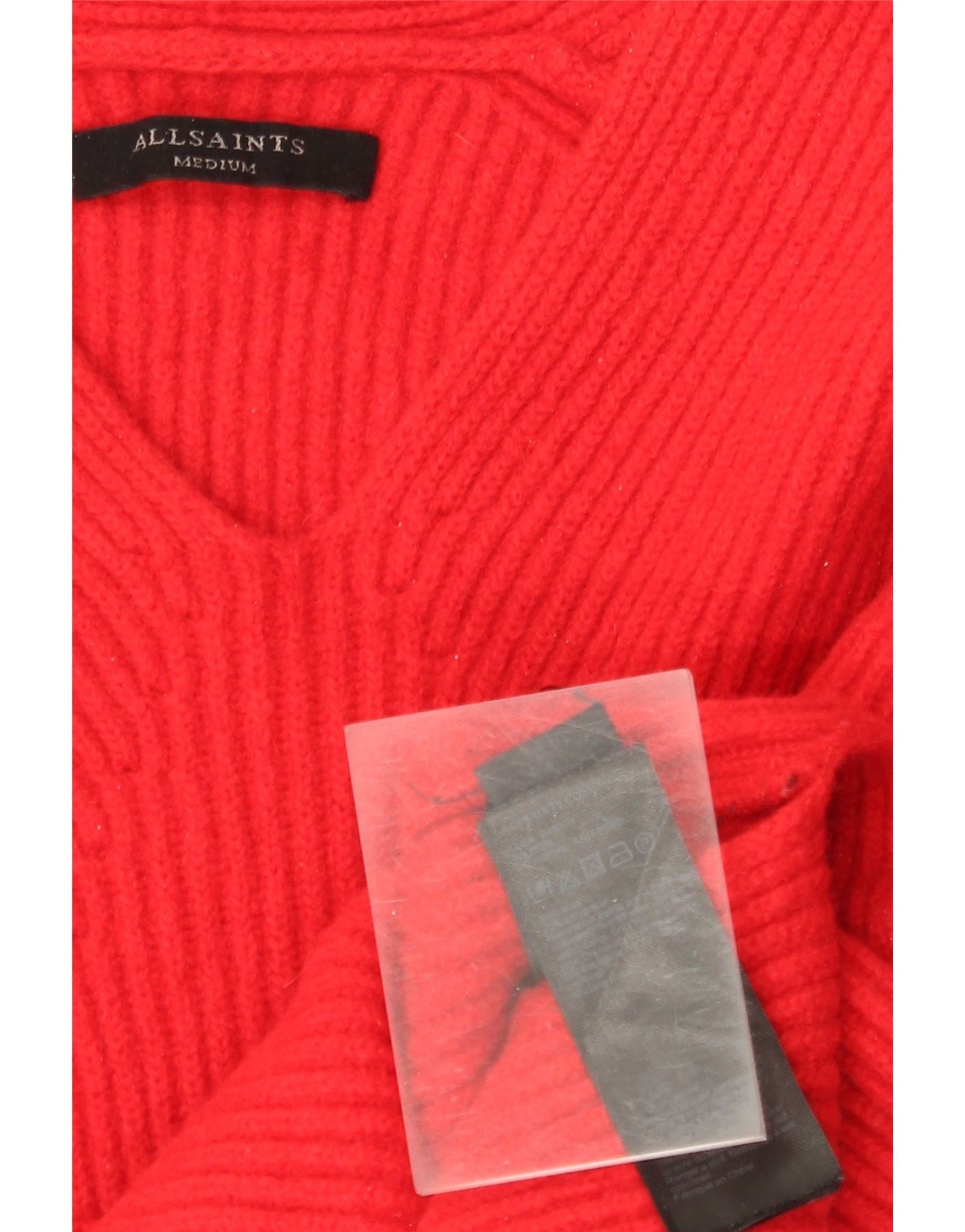 Suéter feminino All Saints com decote em V grande Reino Unido 14 lã vermelha média