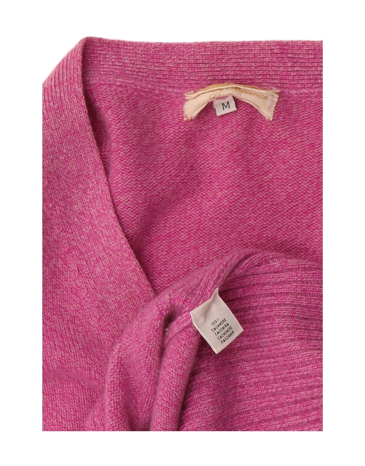 Suéter cardigã feminino com palangre Andre Maurice Reino Unido 14 caxemira rosa médio