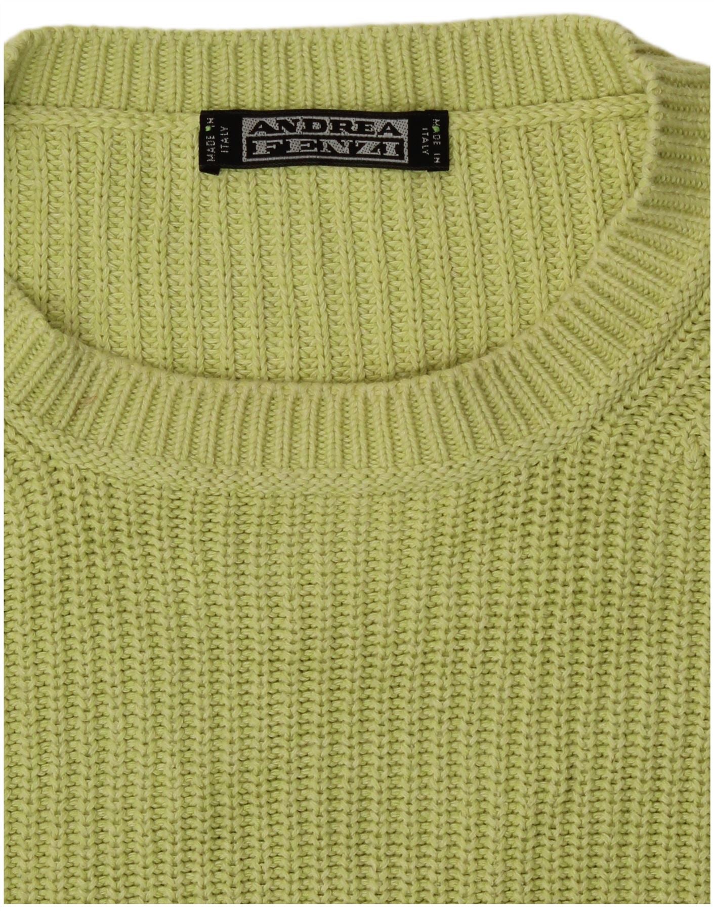 - Descrição da IA: Este suéter feminino Andrea Fenzi com gola redonda é apresentado em um tecido de malha verde vibrante. Possui decote redondo clássico e mangas compridas. O design do pulôver oferece um ajuste confortável e regular. Sua textura com nervuras adiciona um interesse visual sutil. Esta peça é ideal para camadas versáteis.