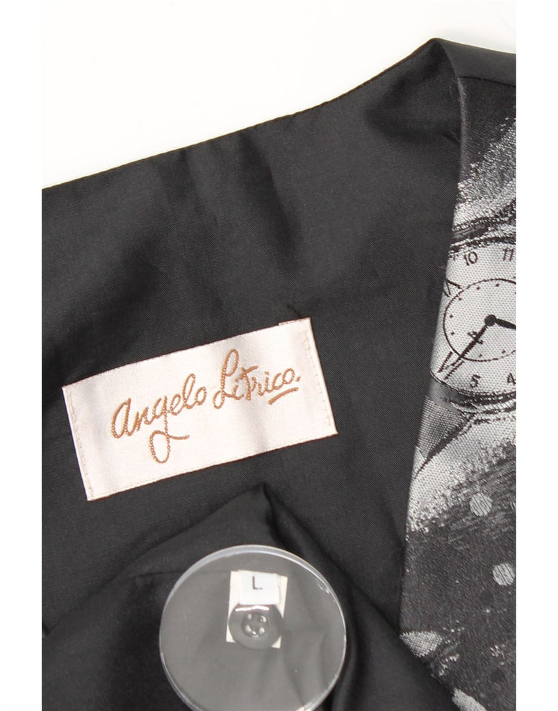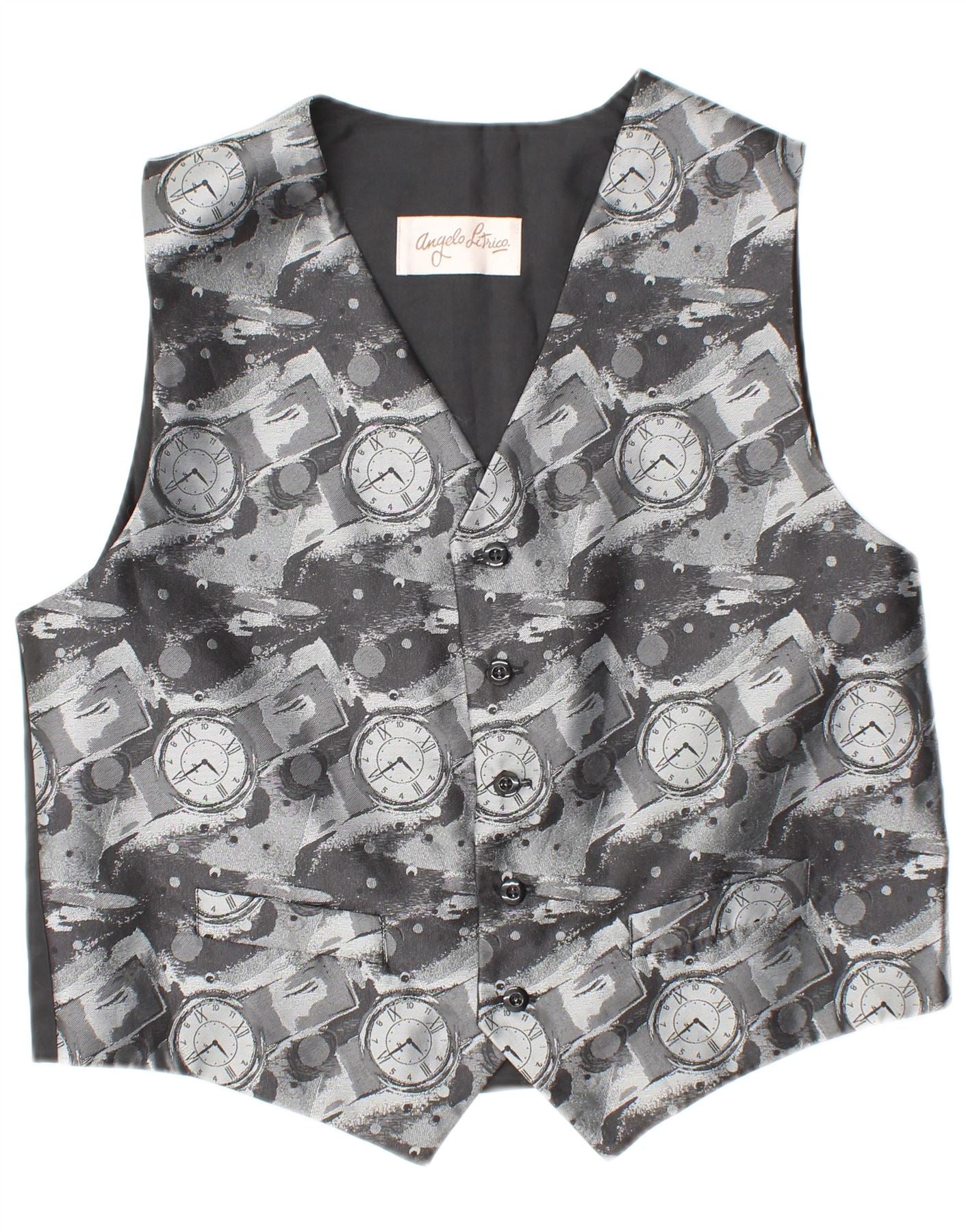 ANGELO LITRICO Mens Abstract Pattern Waistcoat Large Grey Polyester