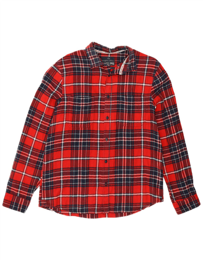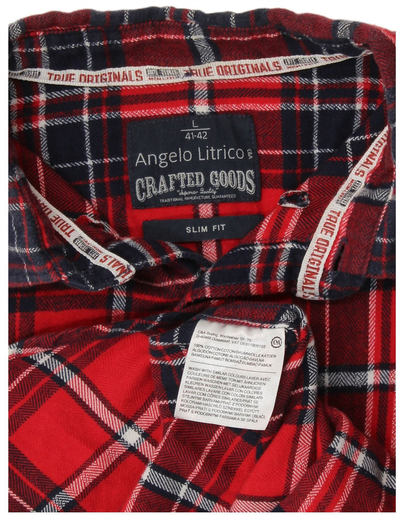 ANGELO LITRICO Camisa masculina de flanela slim fit tamanho 41/42 xadrez vermelha grande