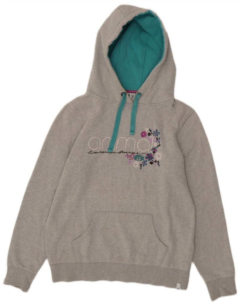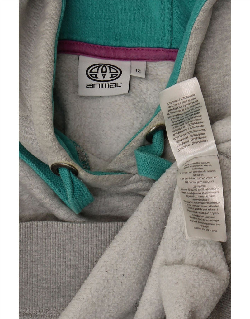 ANIMAL feminino gráfico moletom com capuz UK 12 algodão floral cinza médio