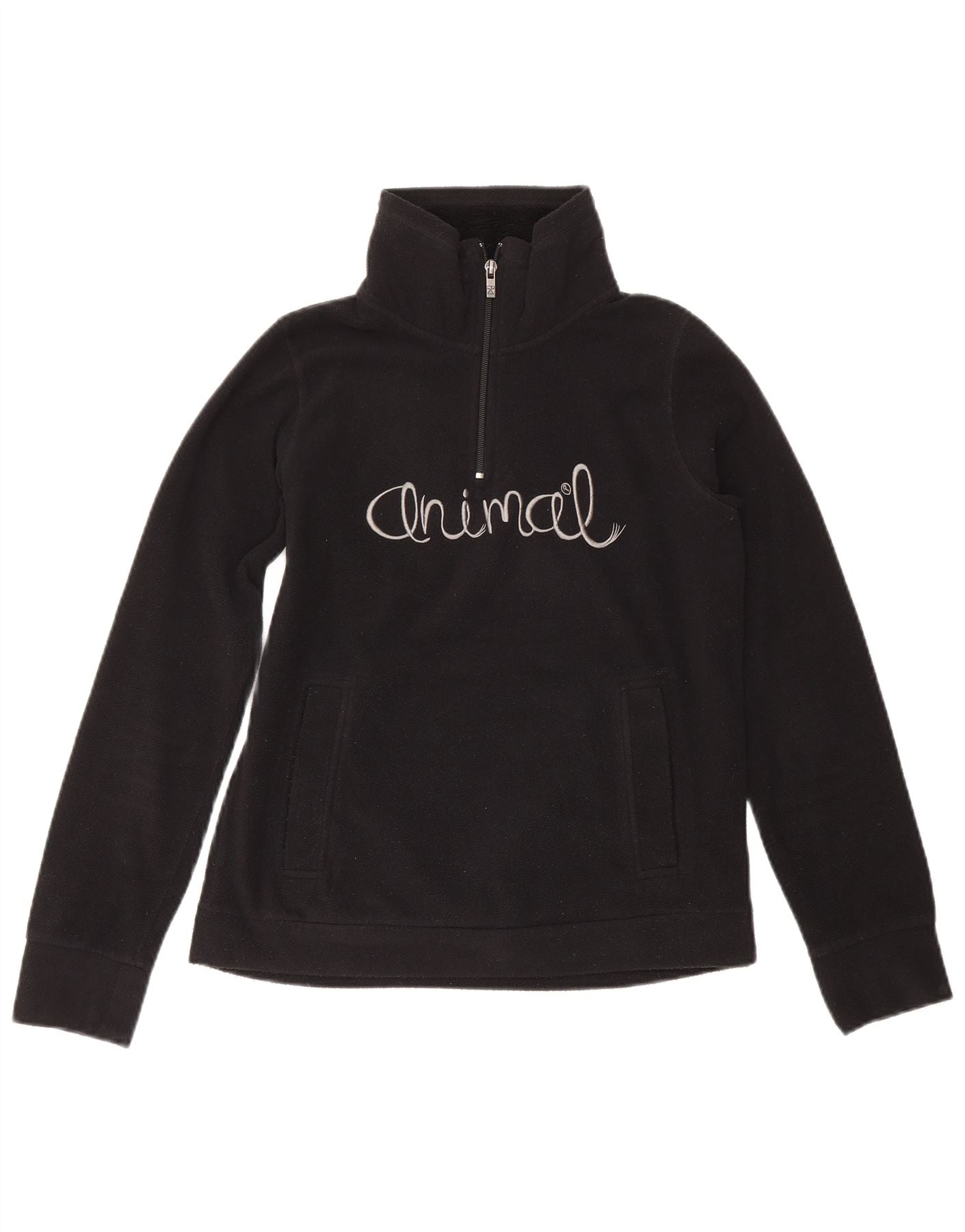ANIMAL Suéter feminino de lã com gola e zíper gráfico UK 10 pequeno poliéster preto