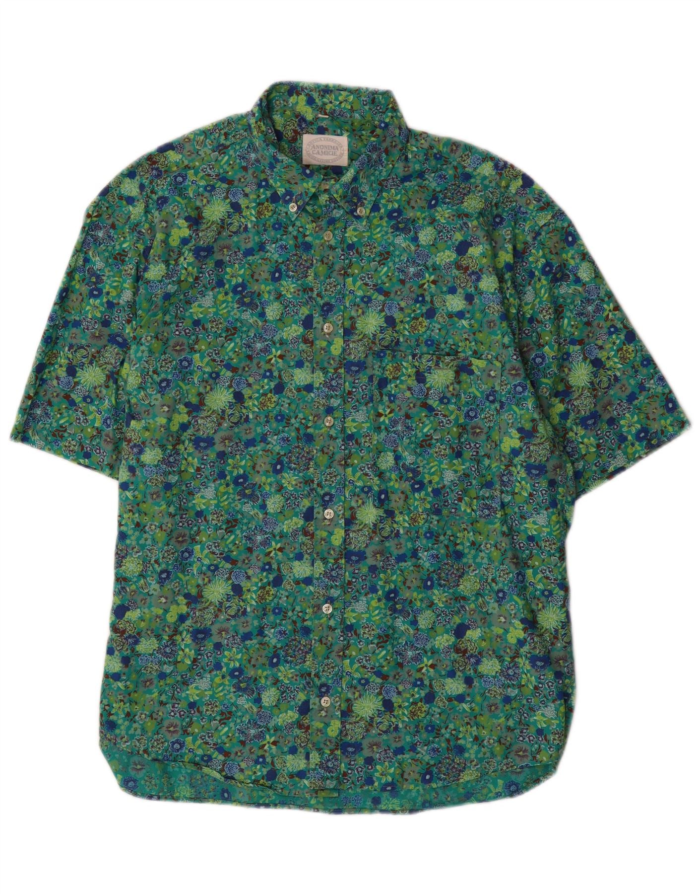 ANONIMA CAMICIE Camisa masculina de manga curta de algodão floral verde médio