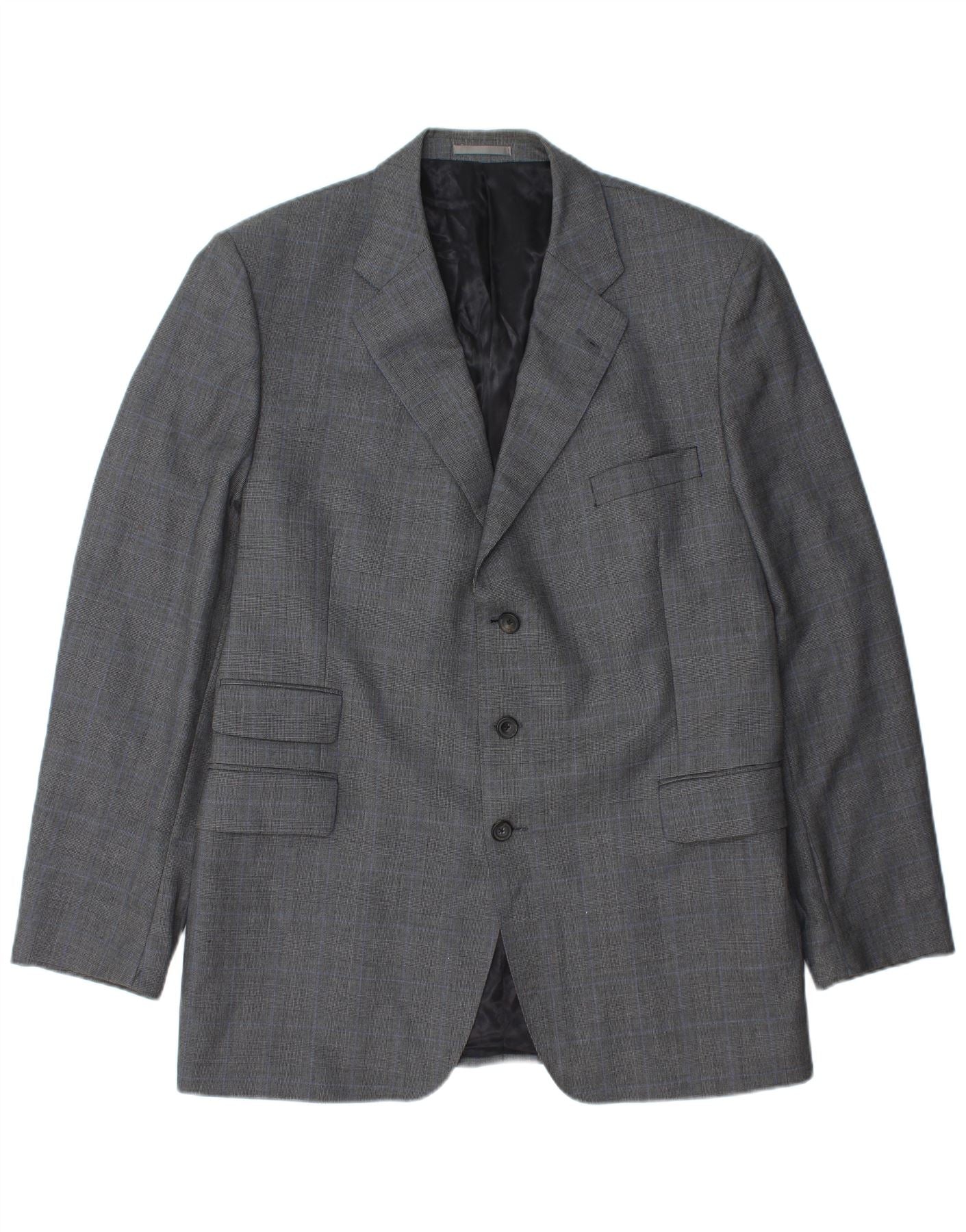 Jaqueta blazer masculina AQUASCUTUM com 3 botões UK 48 4XL lã xadrez cinza