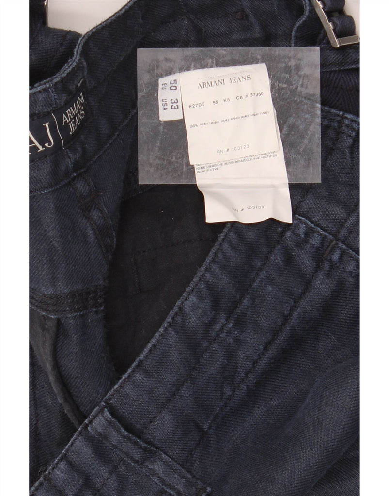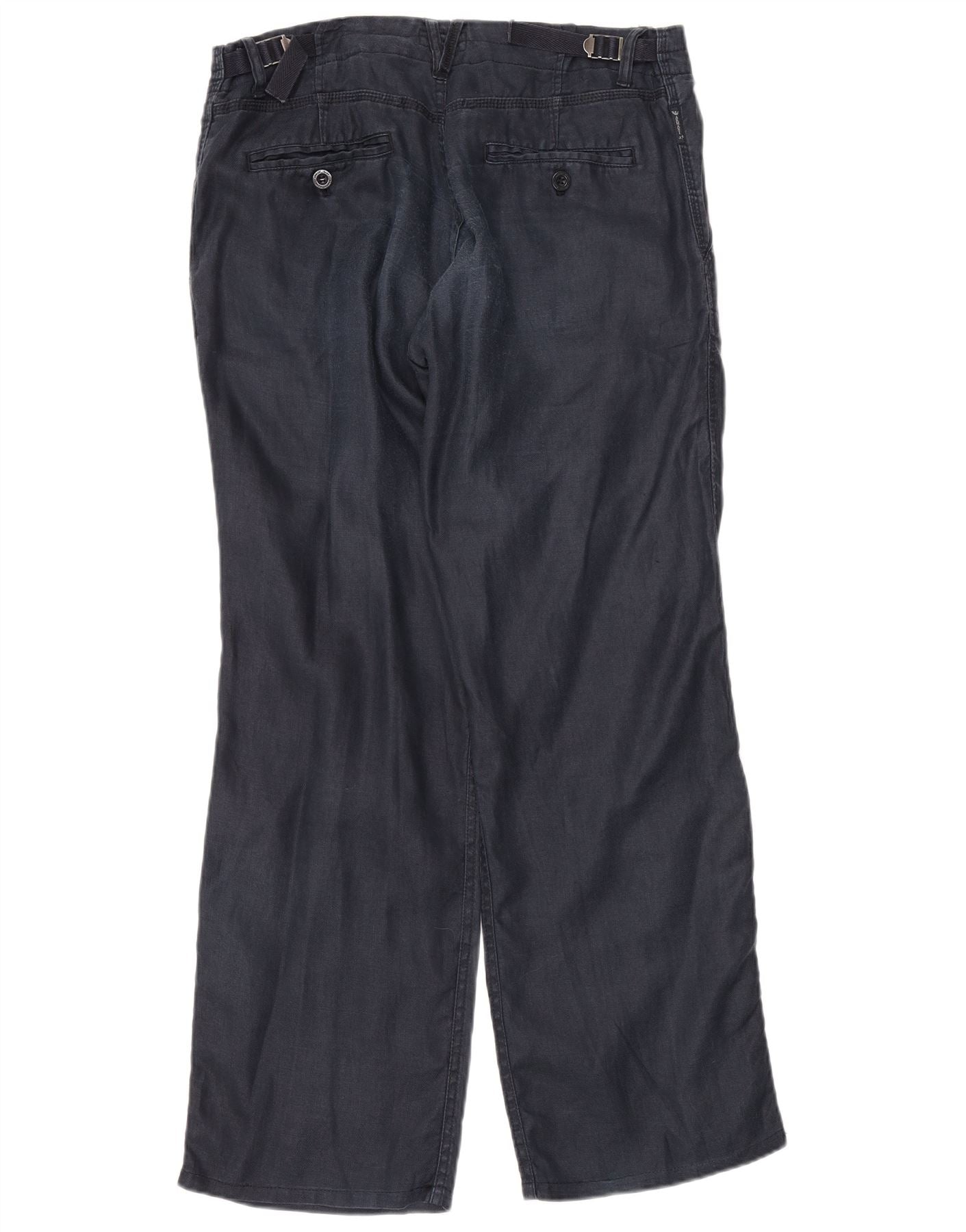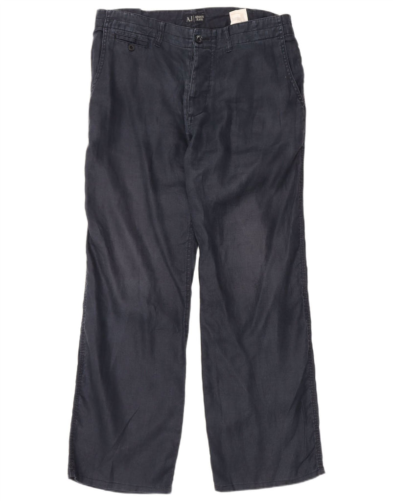 ARMANI Calça masculina casual de perna larga UE 50 grande W33 L32 azul marinho Ramie