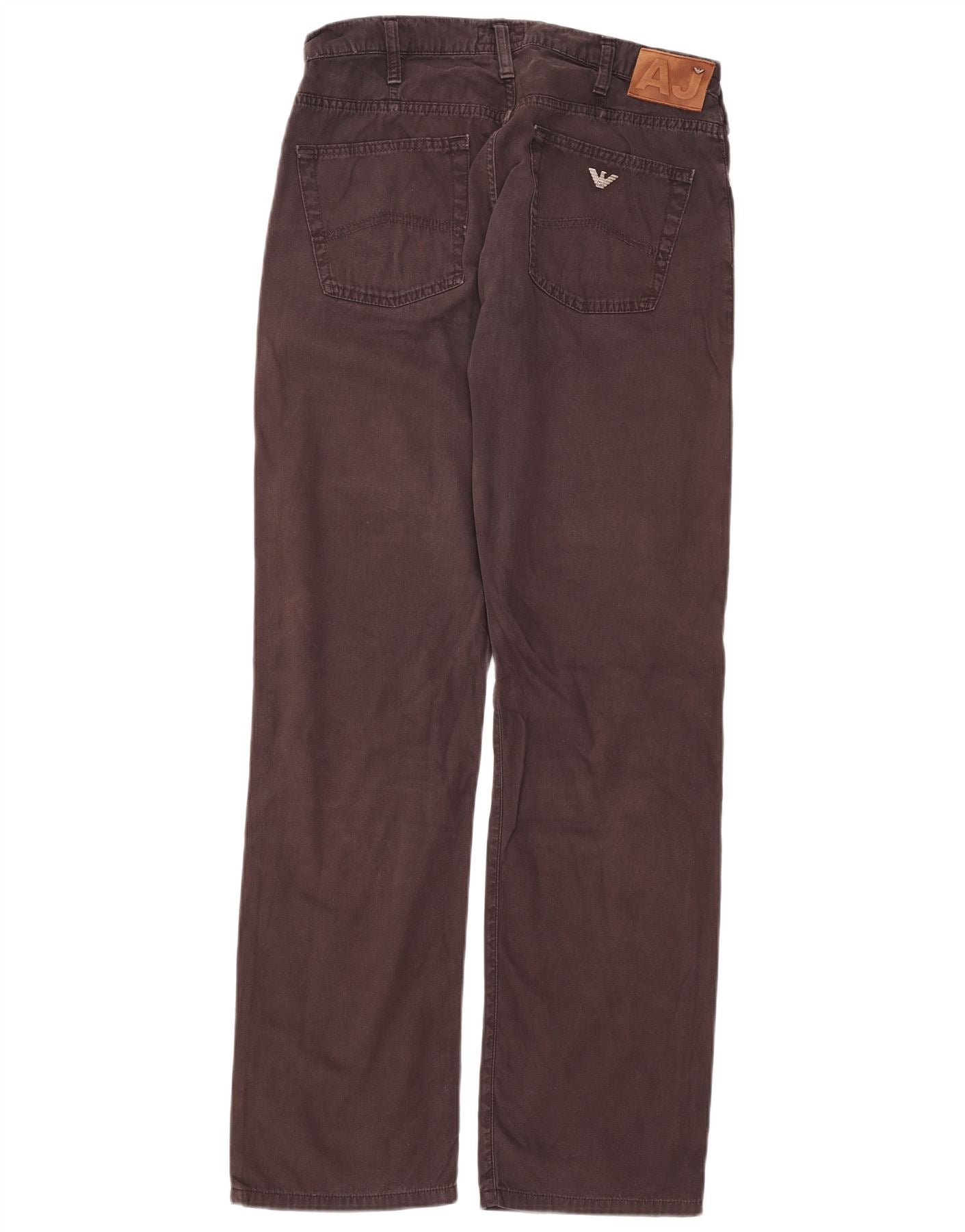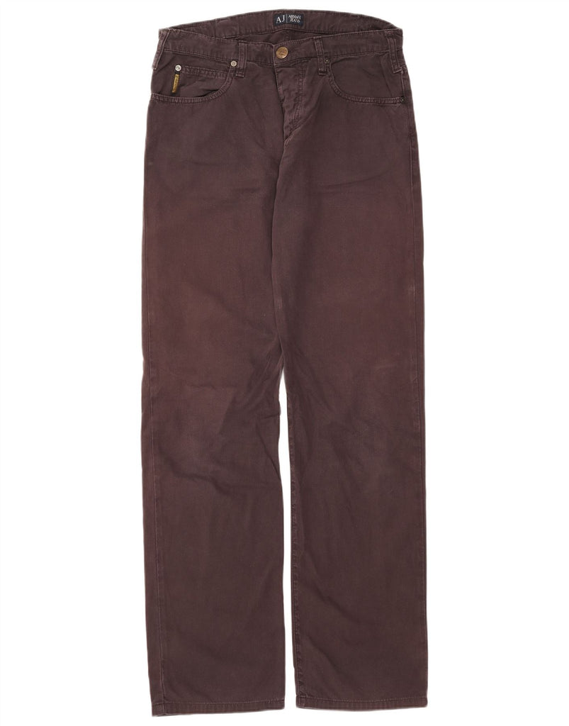 ARMANI Calça masculina reta casual W33 L34 marrom Chevron algodão