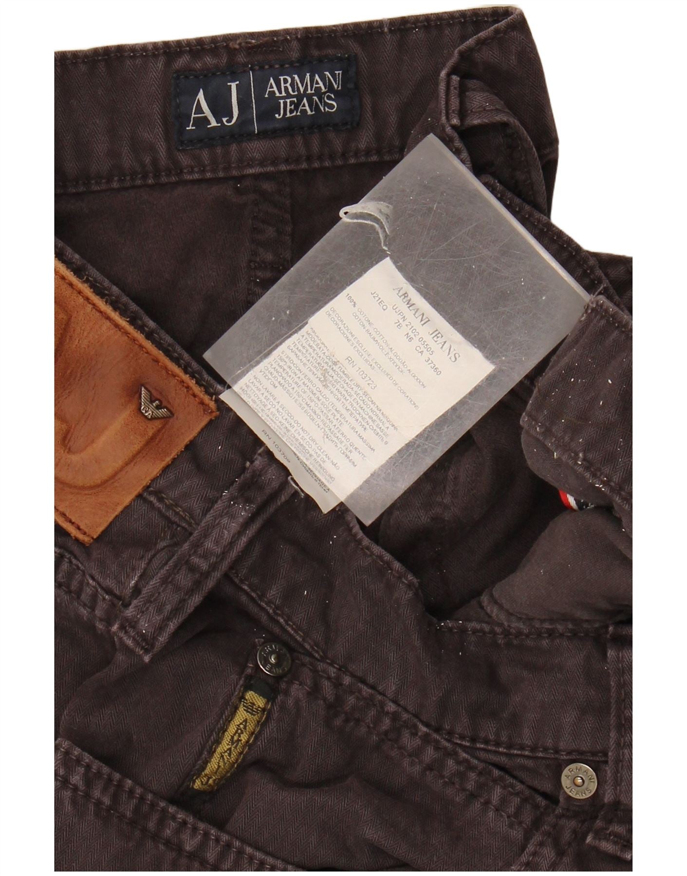 - Descrição da IA: Estes jeans masculinos de veludo Armani Jeans são confeccionados em 100% algodão, oferecendo um rico tom marrom e um toque macio e texturizado. Apresentam um corte clássico regular, garantindo conforto e uma silhueta atemporal. O design de perna reta proporciona uma aparência descontraída, mas elegante. Um fecho de botão protege a frente, complementado por bolsos práticos. O estilo clássico é realçado por detalhes sutis nos botões.