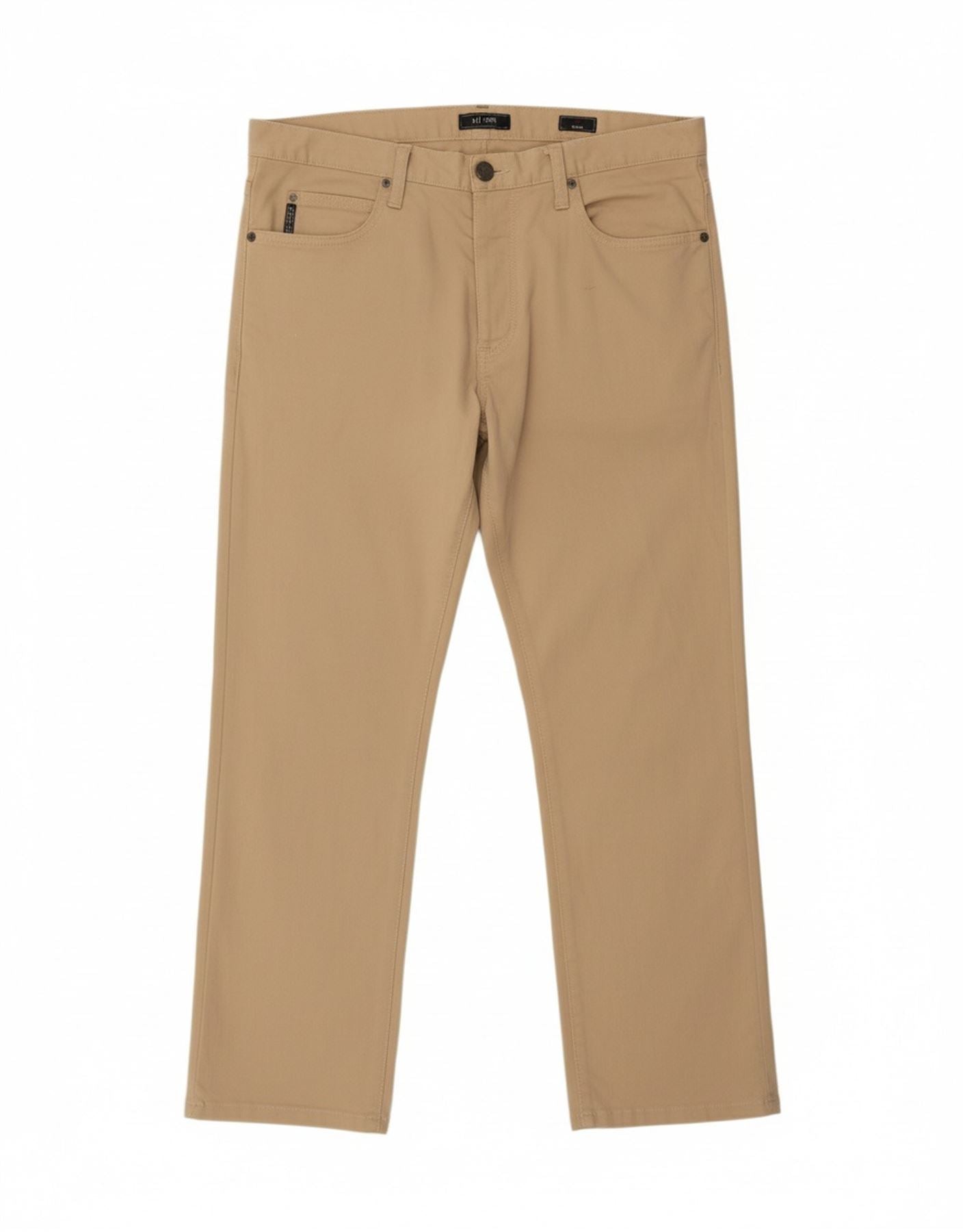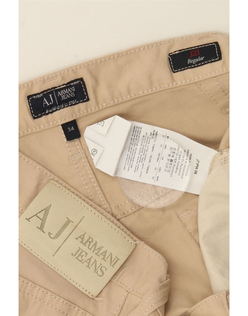 - Descrição da IA: Estes jeans retos masculinos da Armani Jeans são habilmente confeccionados em jeans 100% algodão. O tecido bege oferece um visual clássico e versátil. Eles apresentam um ajuste regular para um uso confortável, proporcionando uma silhueta atemporal. Um fecho de botão protege a cintura, mantendo uma linha limpa. Bolsos práticos estão incluídos para maior comodidade. Um detalhe sutil do logotipo da marca adiciona um toque exclusivo, afirmando a qualidade das peças.