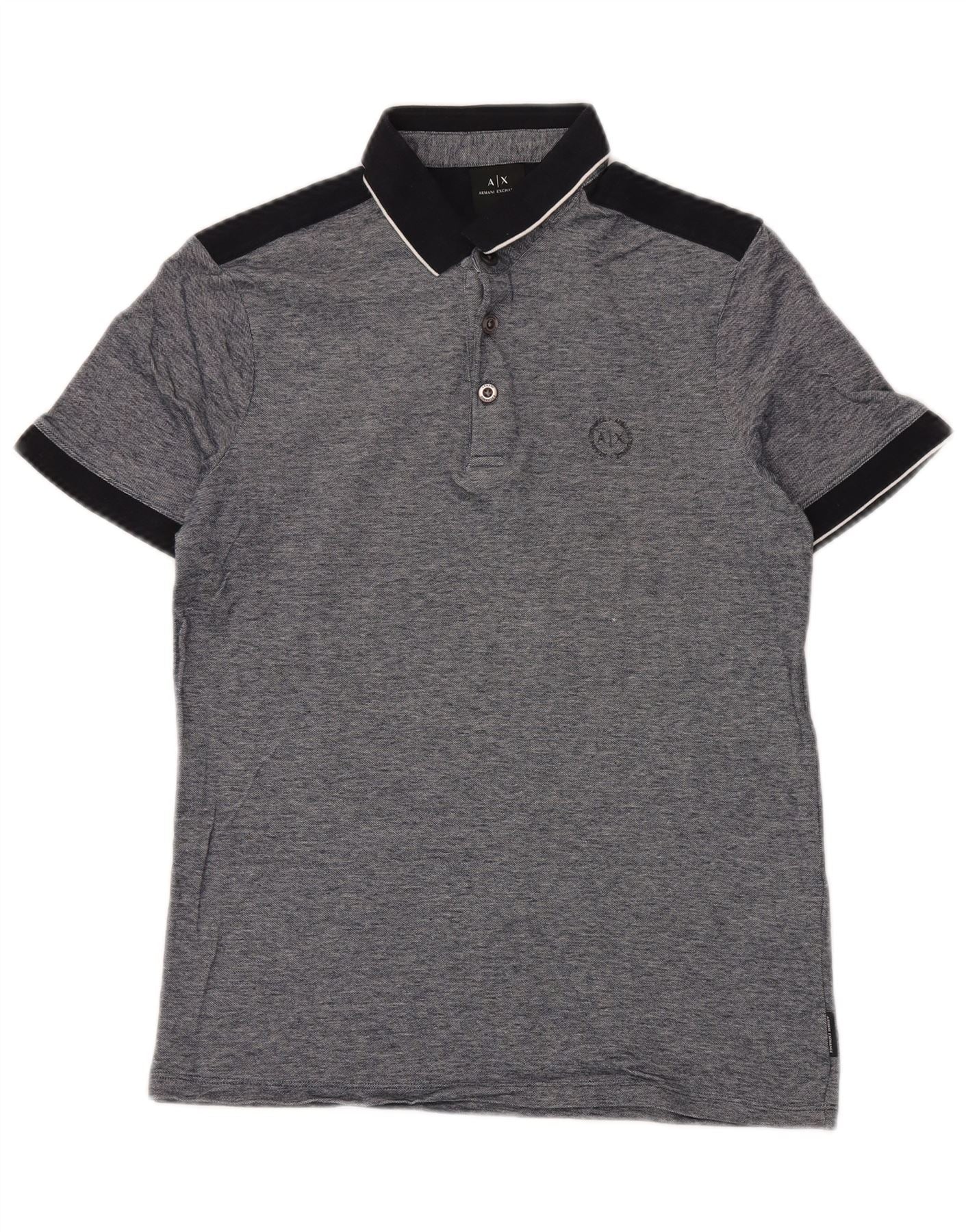 ARMANI EXCHANGE Camisa polo masculina pequena cinza colorblock algodão