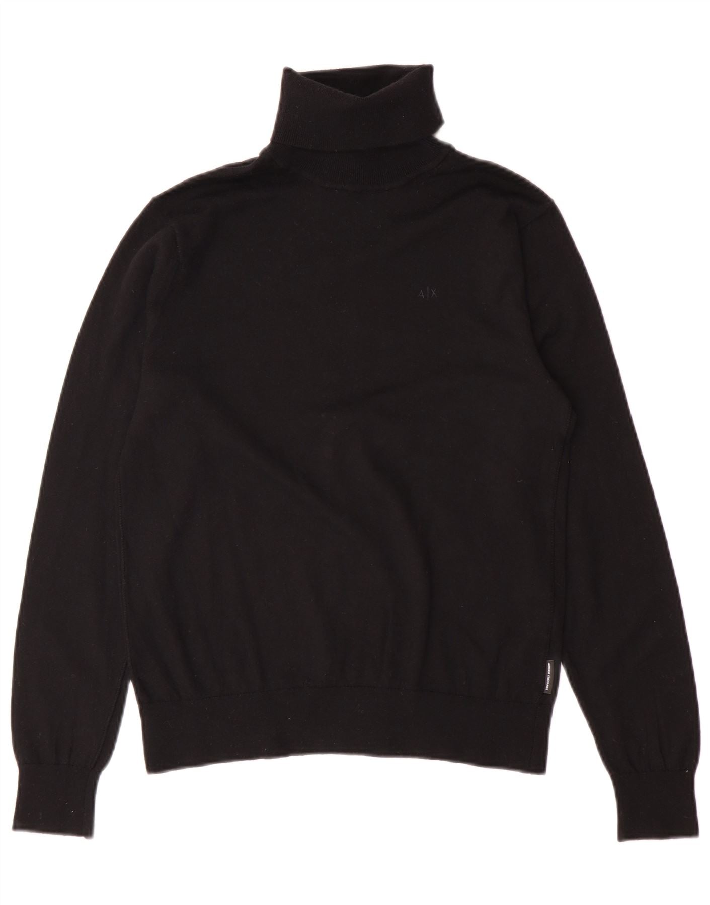 - Descrição da IA: Este suéter masculino Roll Neck Jumper da Armani Exchange é confeccionado em uma luxuosa malha de lã preta, oferecendo calor e toque macio. Possui gola redonda clássica e mangas compridas, proporcionando uma silhueta refinada. O design do pulôver garante um desgaste sem esforço. Um ajuste regular oferece movimentos confortáveis. Punhos e bainha canelados completam o estilo versátil e atemporal.