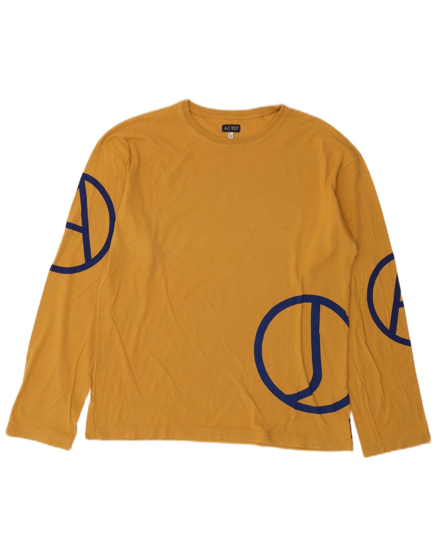 Armani Jeans Mens Gráfico Top Manga Longa Médio Algodão Amarelo
