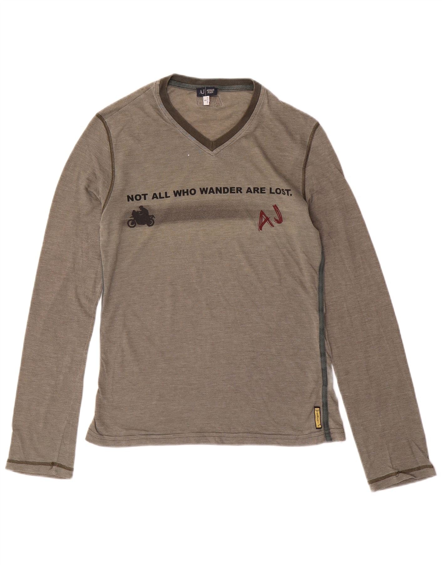ARMANI JEANS Top gráfico masculino manga comprida pequeno algodão cinza