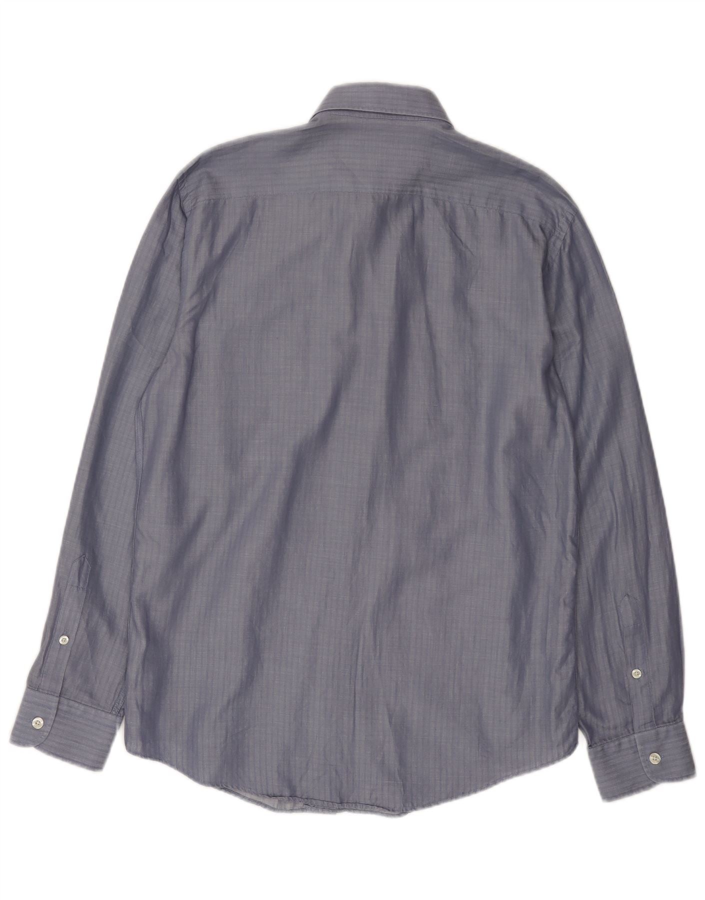 Camisa masculina Armani Jeans grande listrada azul de algodão