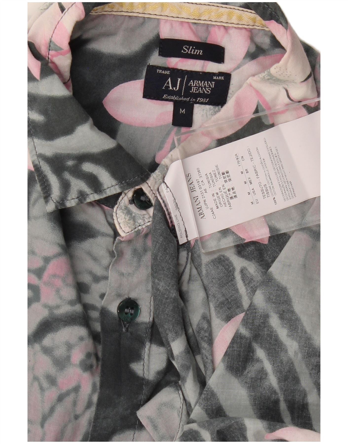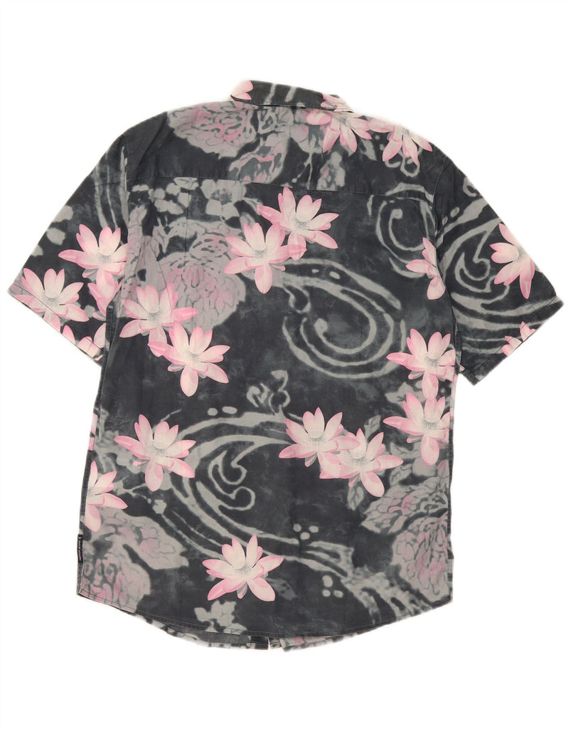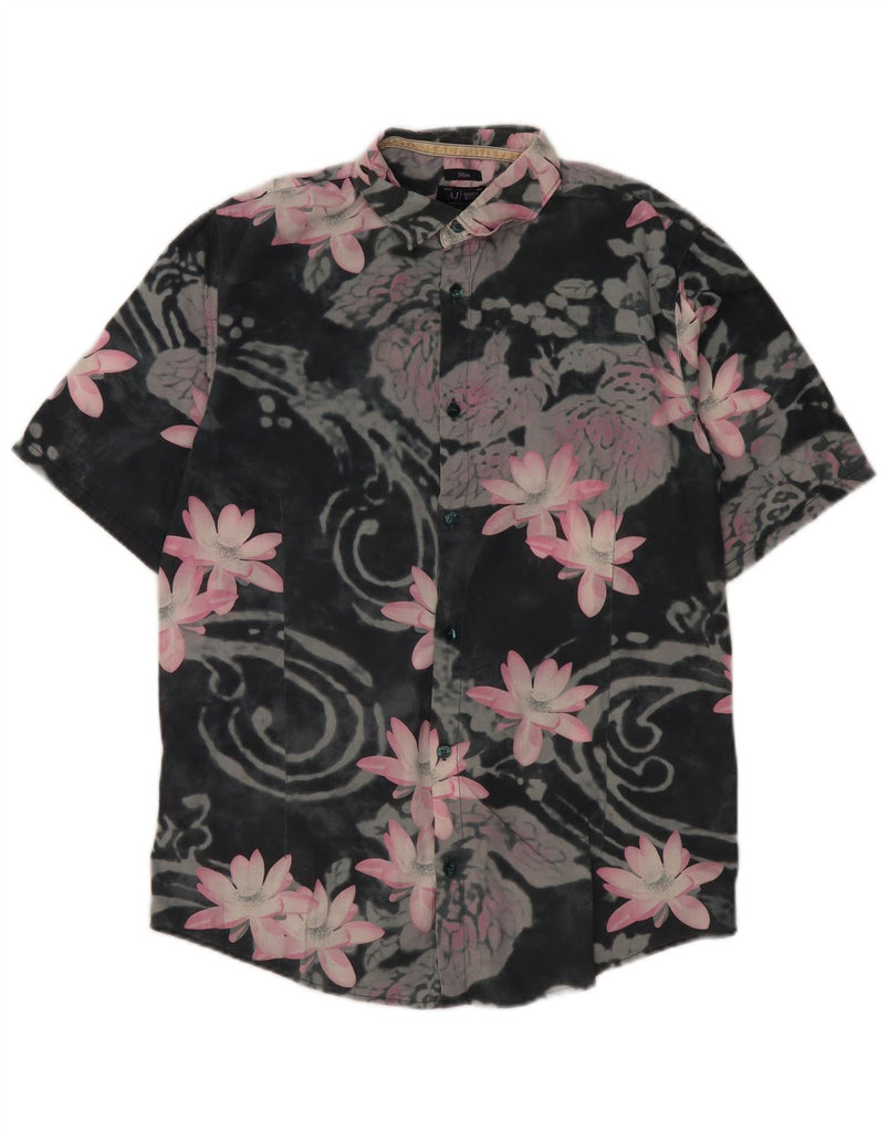 ARMANI JEANS Mens Slim Short Sleeve Shirt Medium Grey Floral Cotton
