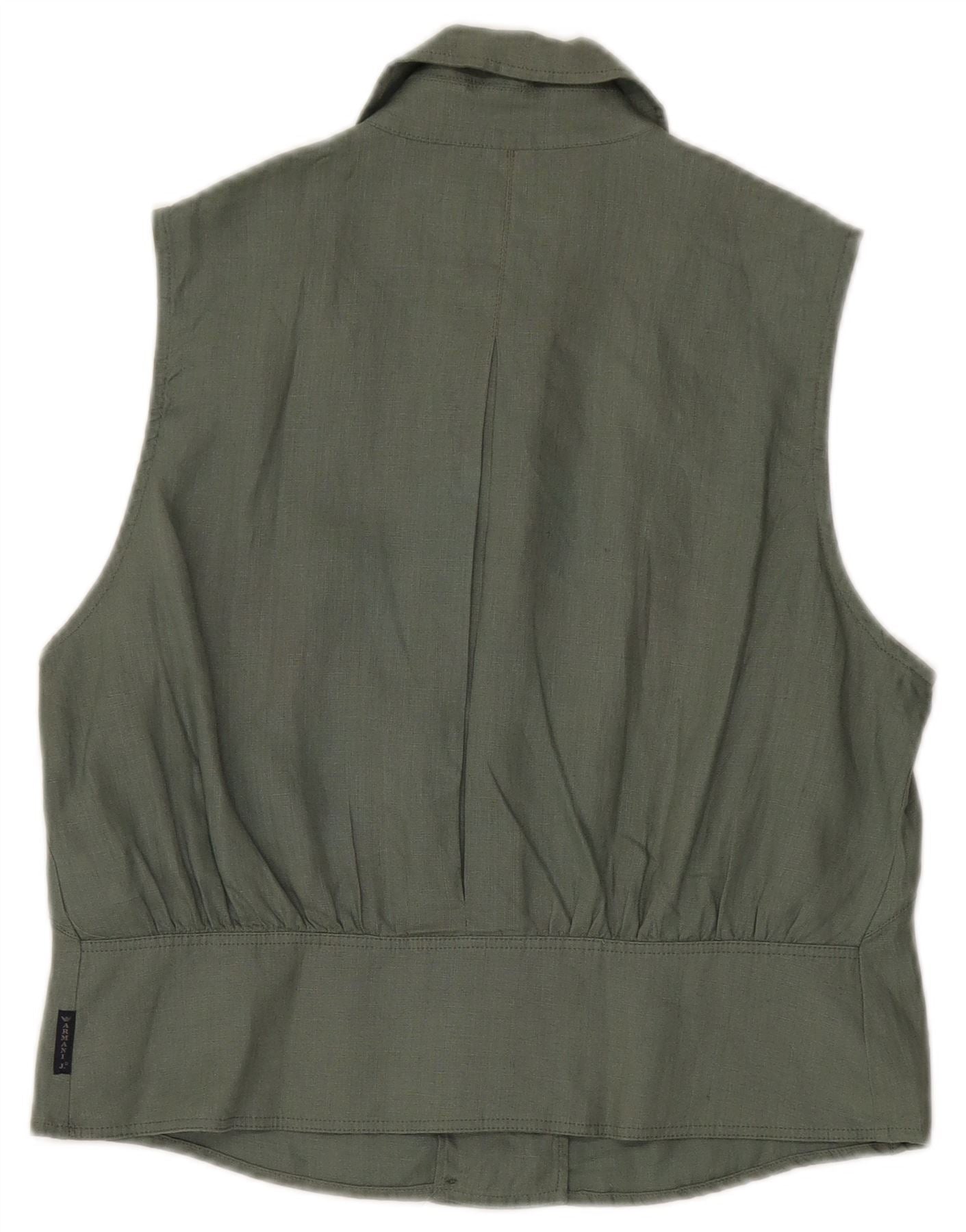 Blusa feminina Armani Jeans sem mangas com botões duplos IT 48 XL cáqui
