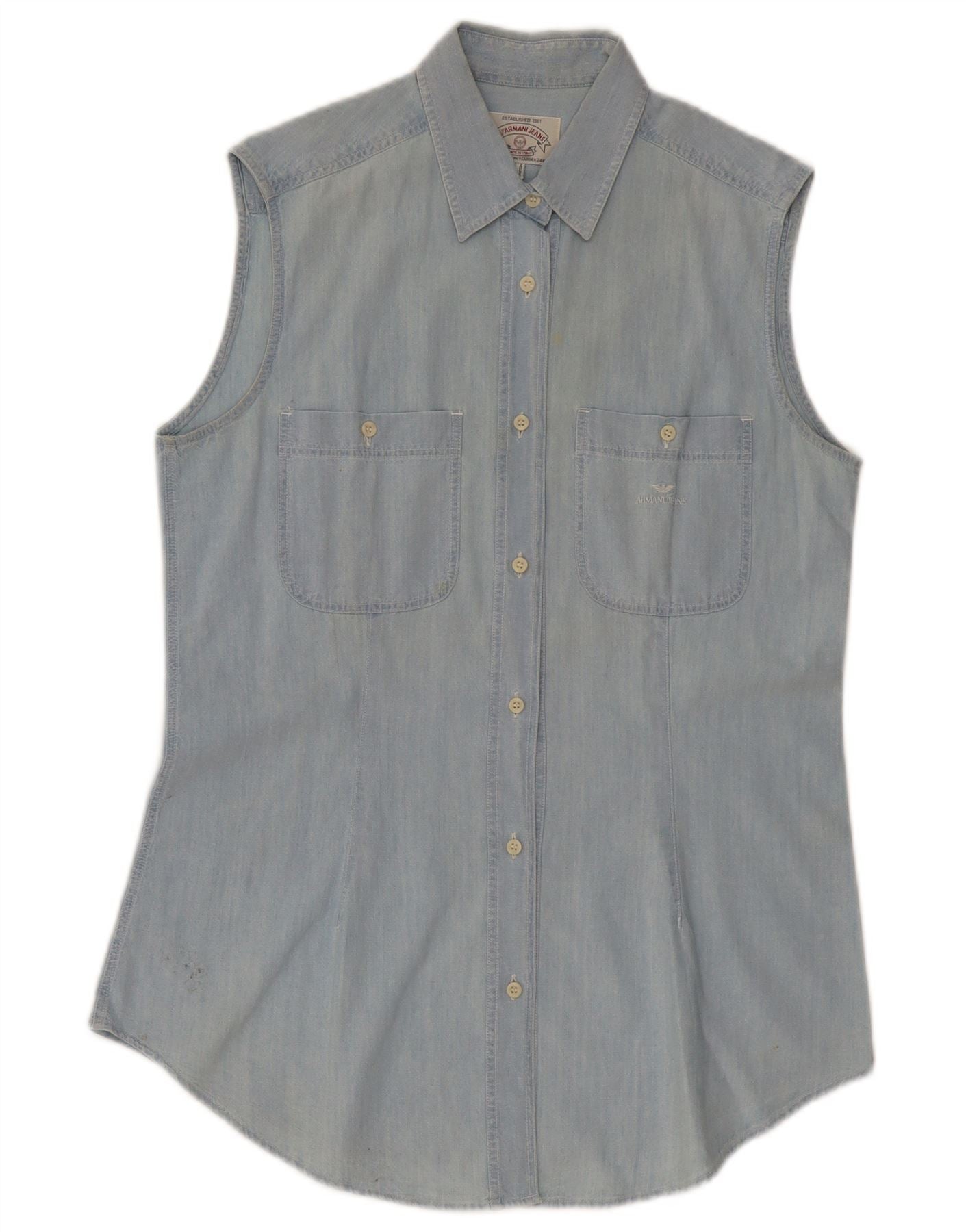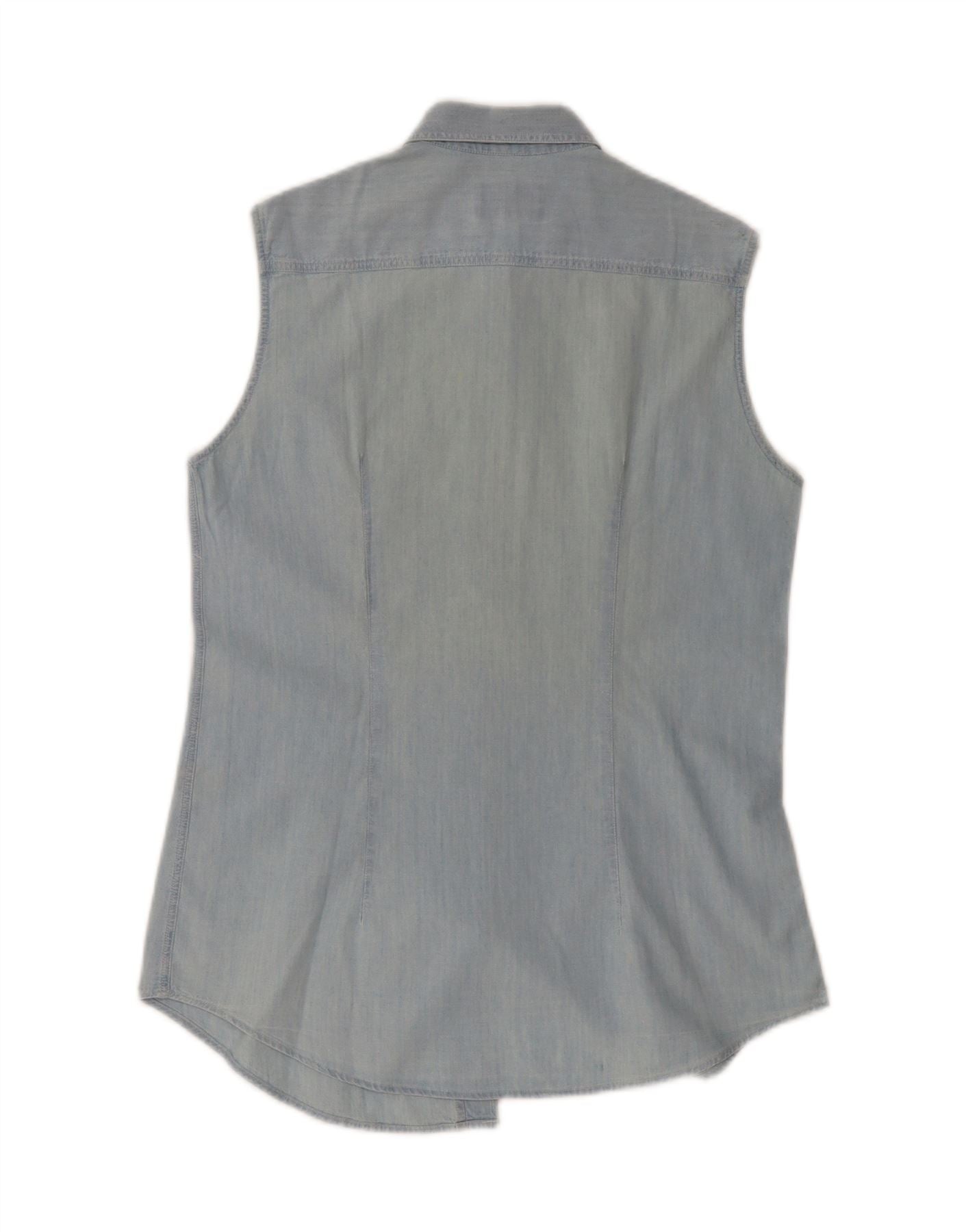 ARMANI JEANS Womens Tall Sleeveless Denim Shirt UK 14 Medium Blue Cotton